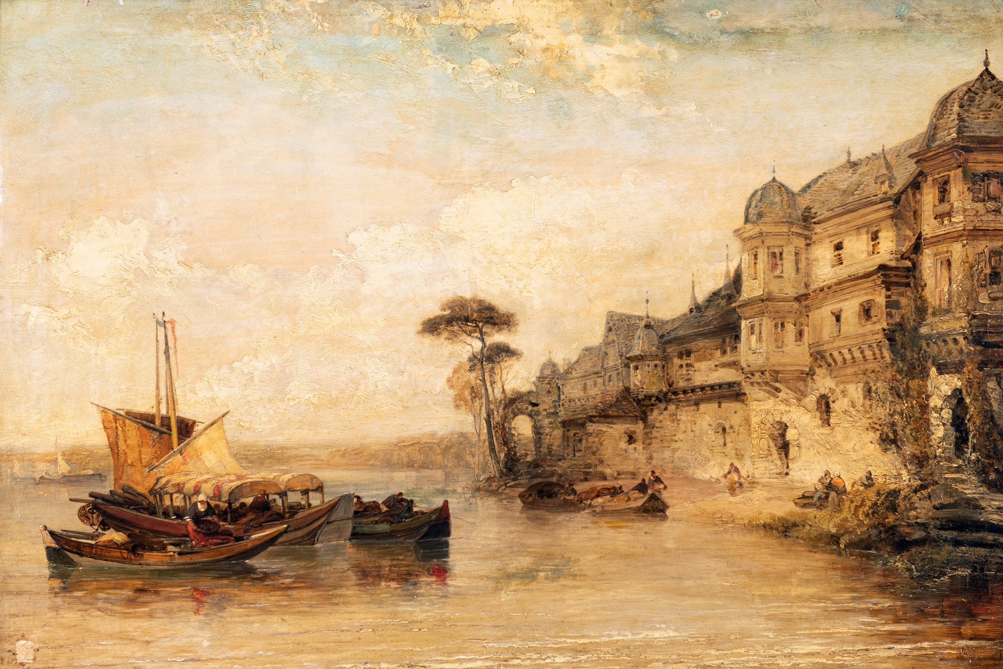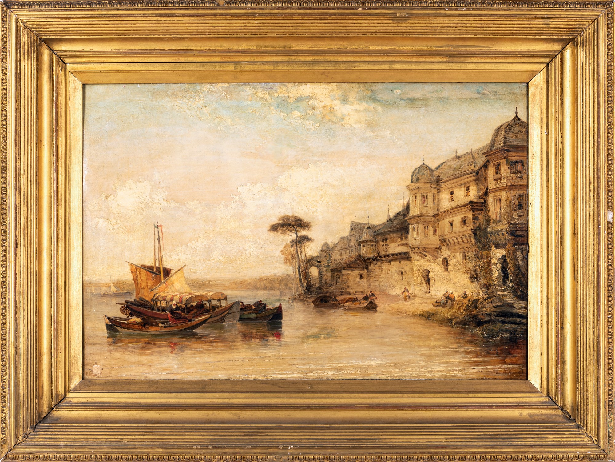 Lot 512 | Scuola inglese del XIX secolo Capriccio con architetture e imbarcazioni