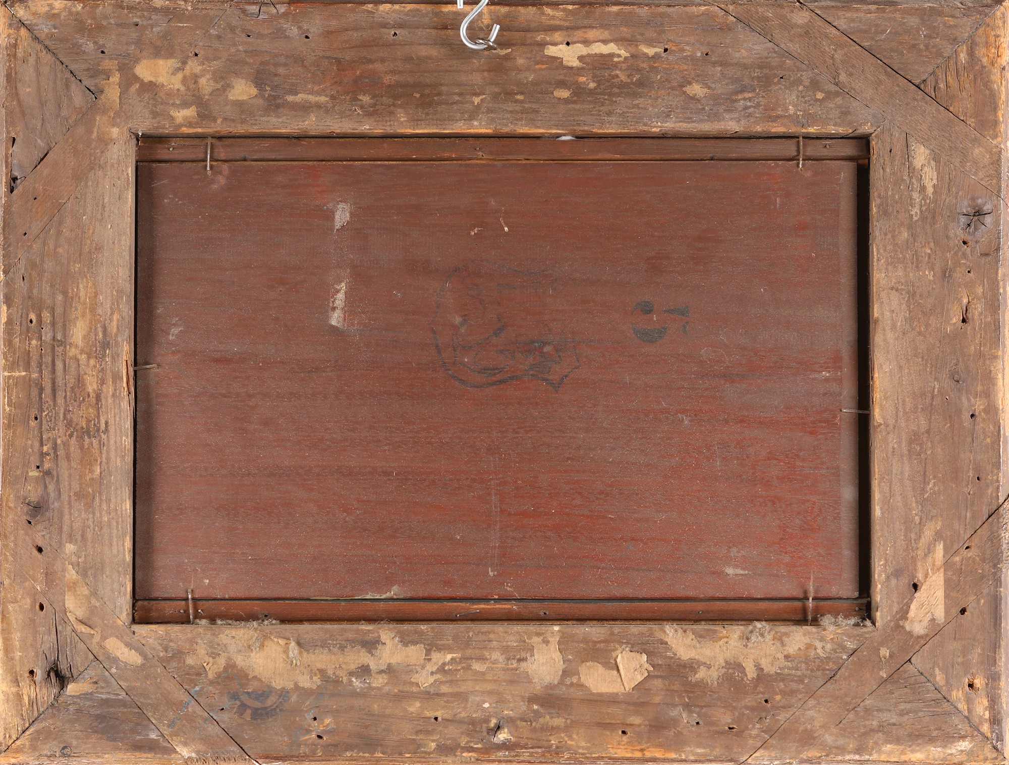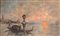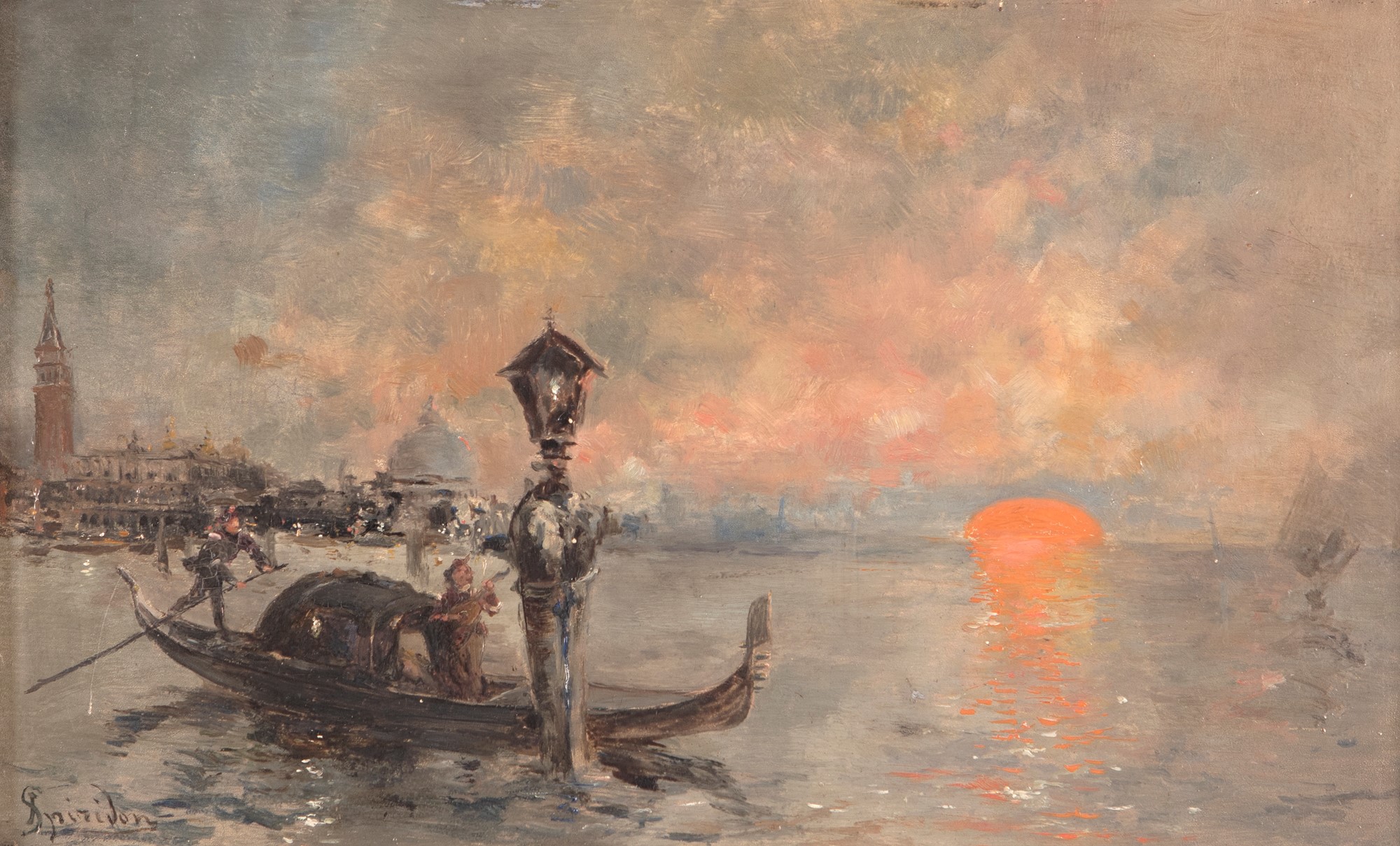 Ignace Spiridon Roma 1848-Nizza 1930 Tramonto in laguna Firmato in basso Olio su tavoletta cm 21x35 - con cornice cm 37x50
