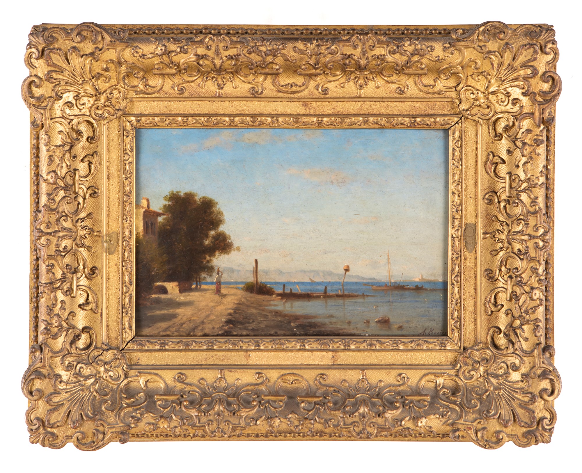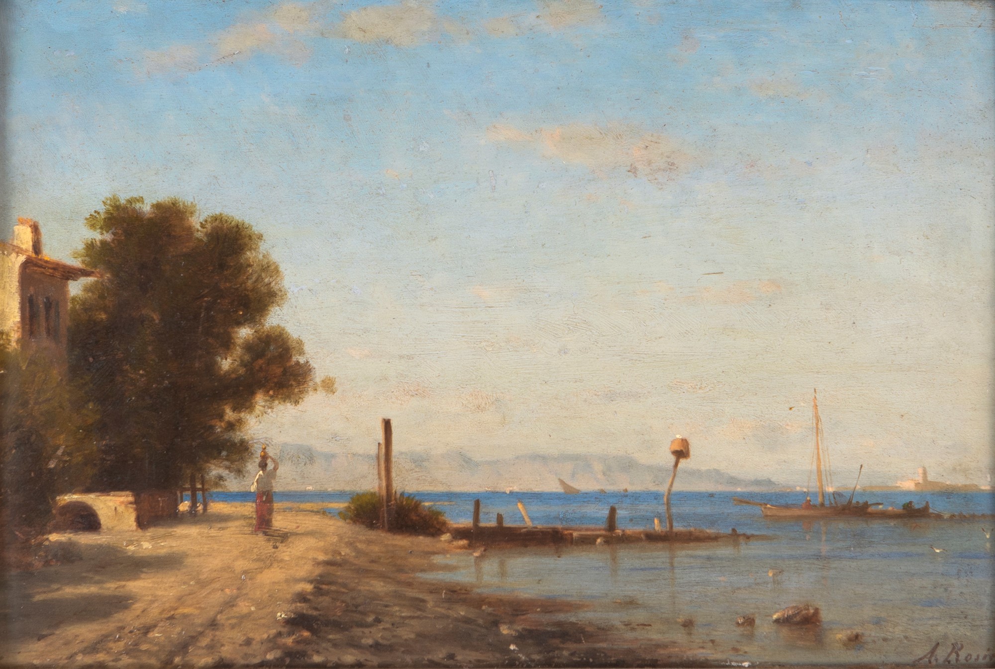 Amédée Rosier 1831-1898 Paesaggio meridionale Olio su tavola cm 23x36 - con cornice cm 43x46