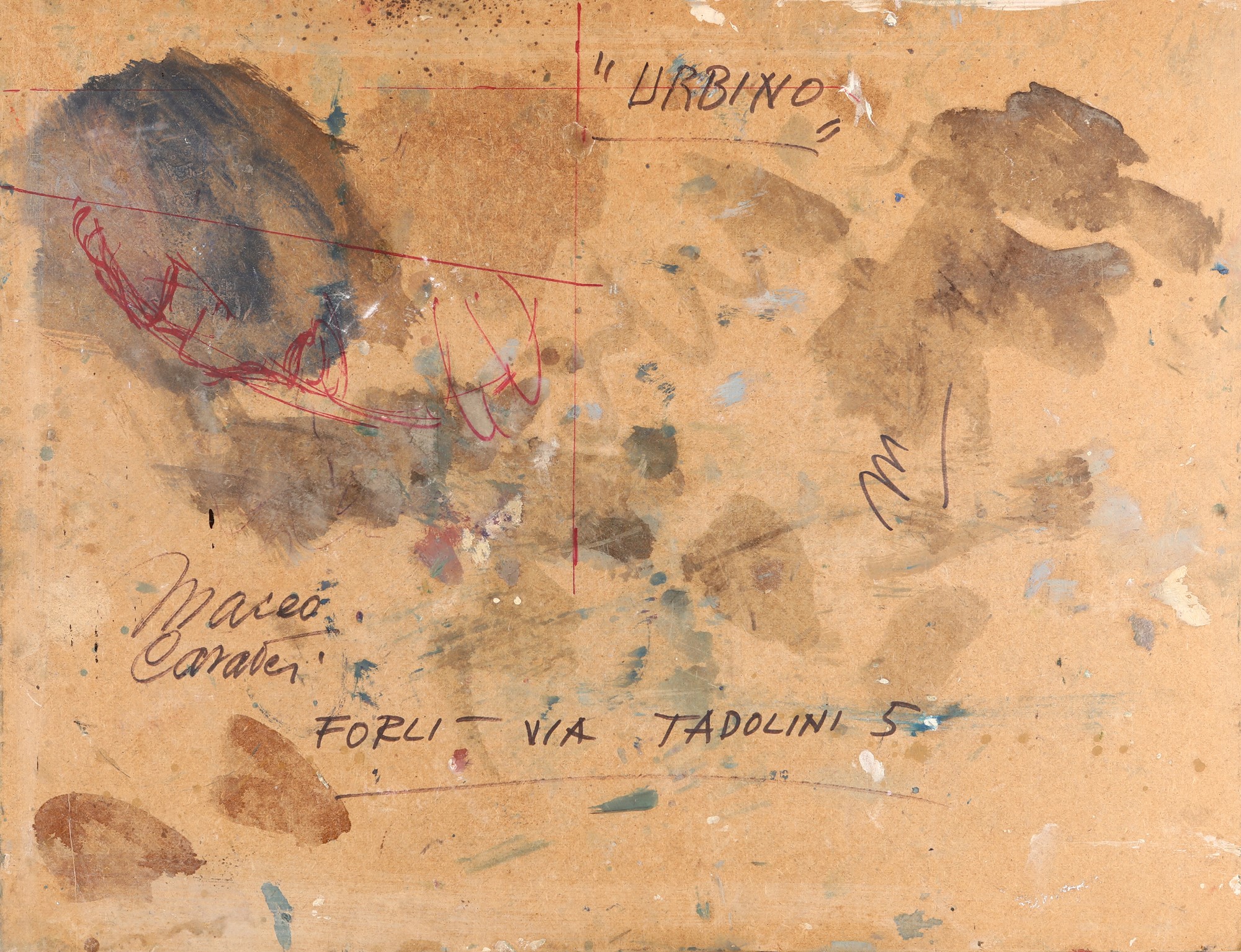 Maceo Casadei Forli 1899-Forli 1992 Veduta di Urbino Firmato in basso a destra: Maceo Casadei. Al verso firma, titolo e indirizzo dell'Artista olio su cartone cm 50x65 s.c.