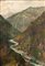 Lorenzo Delleani Pollone 1840-Torino 1908 Il fiume in fondo alla valle datato 14.9.97. Al verso timbro "Opera di Lorenzo Delleani" con firma "L. Bistolfi". Provenienza: eredi Ettore Modigliani, Milano. olio su tavoletta cm 47 x 32 in cornice dorata cm 55 x 43