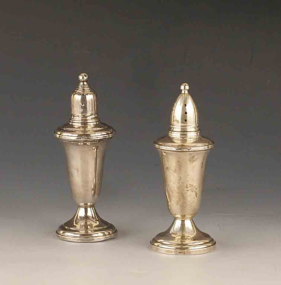 Coppia di salierine in argento, Stati Uniti, primi anni del XX secolo, h. cm. 12.