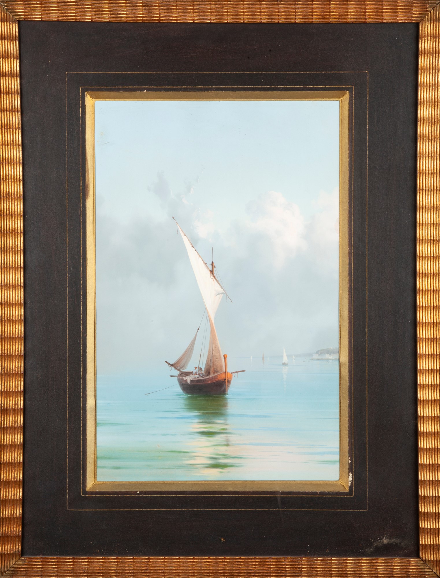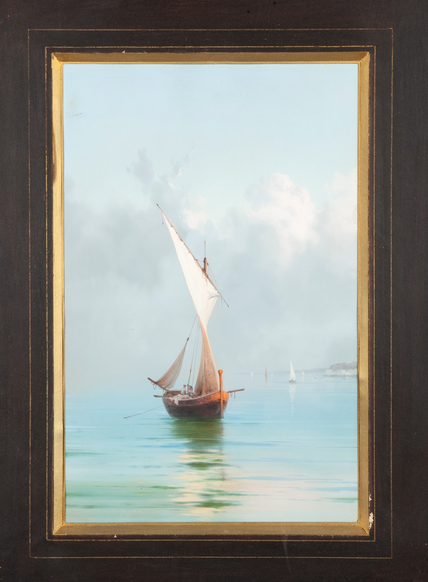 Pittore del XIX secolo Marina con imbarcazione Tempera su carta, seconda metà dell'800