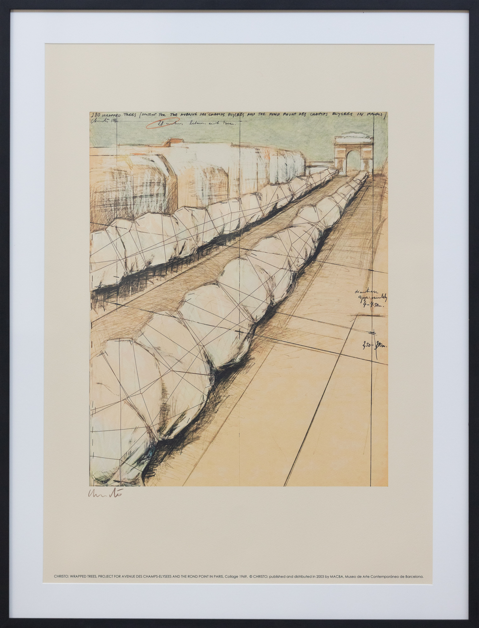 CHRISTO Wrapped trees, Champs Elysees 1969