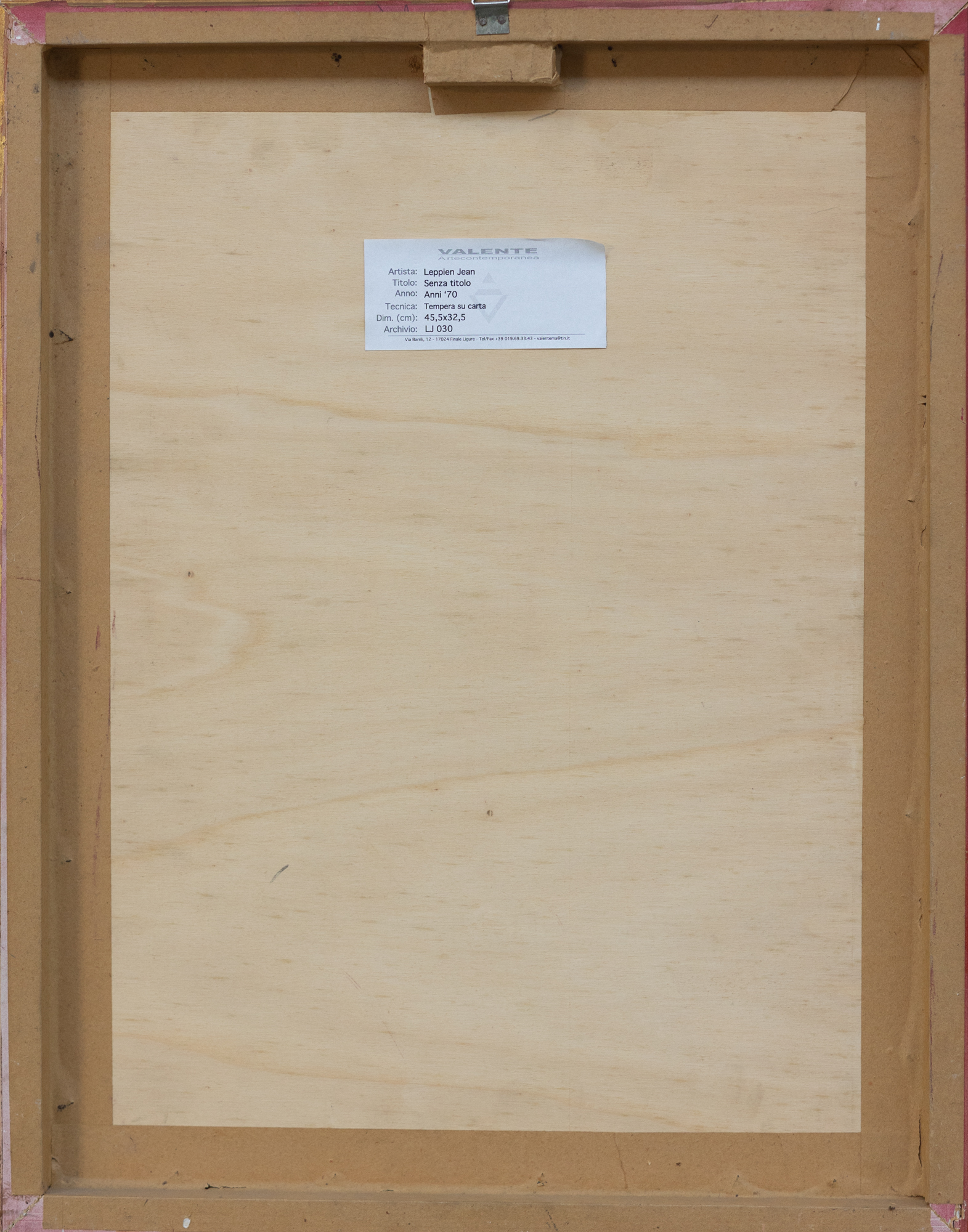 Etichetta al retro Valente Arte Contemporanea
