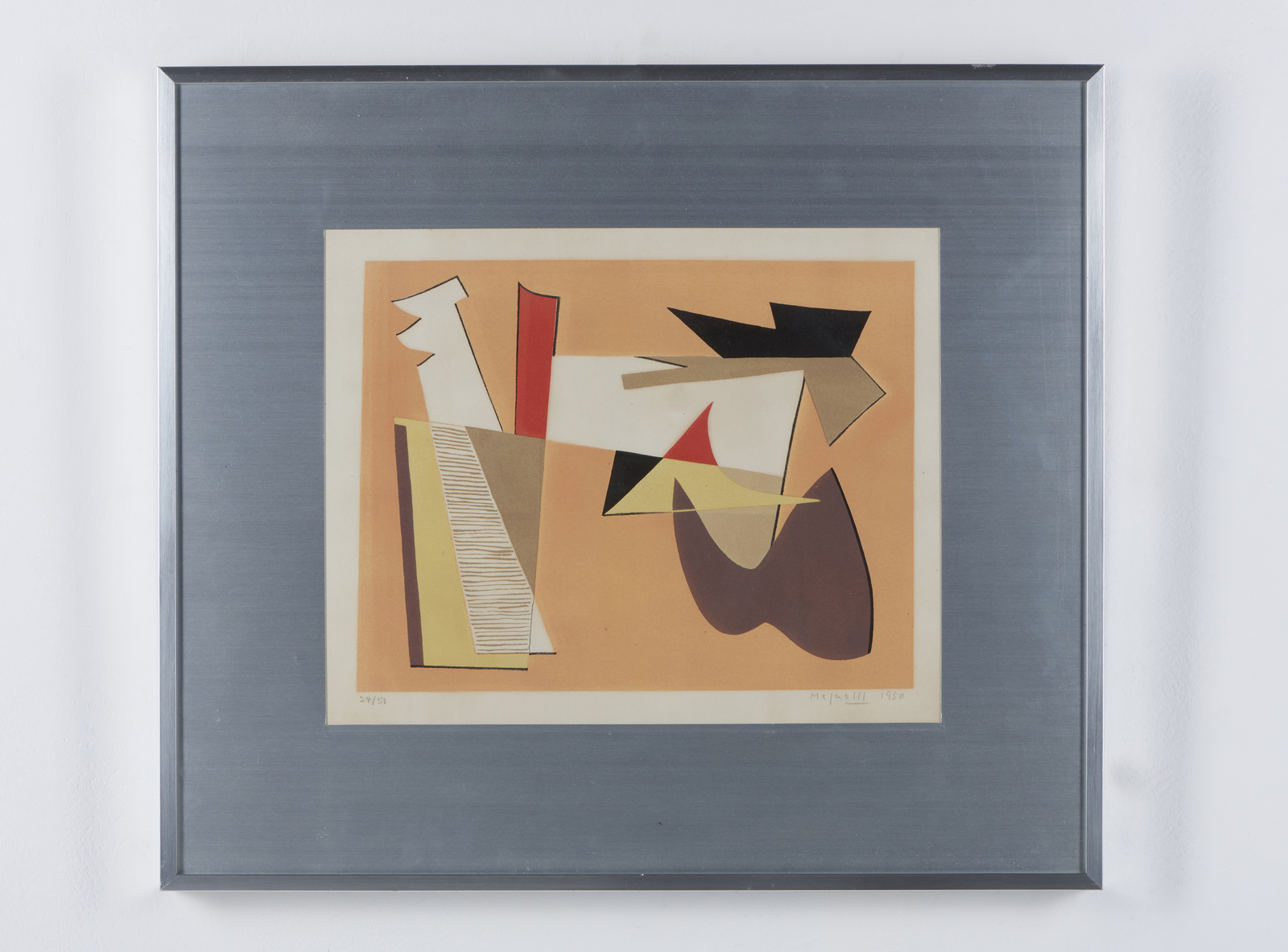 MAGNELLI ALBERTO (1888 - 1971) Composizione. 1950. Litografia. Cm 49,50 x 45,50. 24/50. Tiratura, firma e anno in basso a matita. Provenienza: Collezione Besner - Decca, Piacenza. Cornice presente