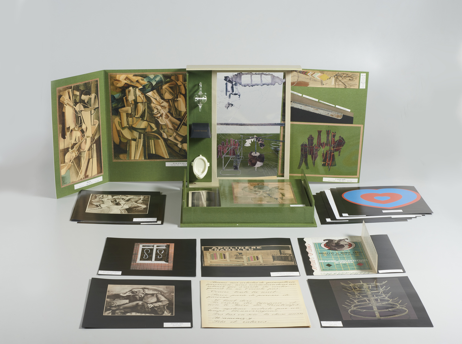 Uno dei pezzi più importanti ed enigmatici dell'arte moderna, "Boîte-en-valise" è stato assemblato da Marcel Duchamp tra il 1935 e il 1941. La valigia portatile contiene "la somma del suo lavoro artistico" proprio fino a quella data ( edizione totale in 300 copie).