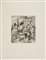 MANFREDI ALBERTO (1930 - 2001) Senza titolo. 1955. Acquaforte. Cm 39,00 x 50,00. 43/100. Tiratura, firma e anno in basso a matita. Dimensione lastra: 22.8x20.3 cm. Lievi difetti.