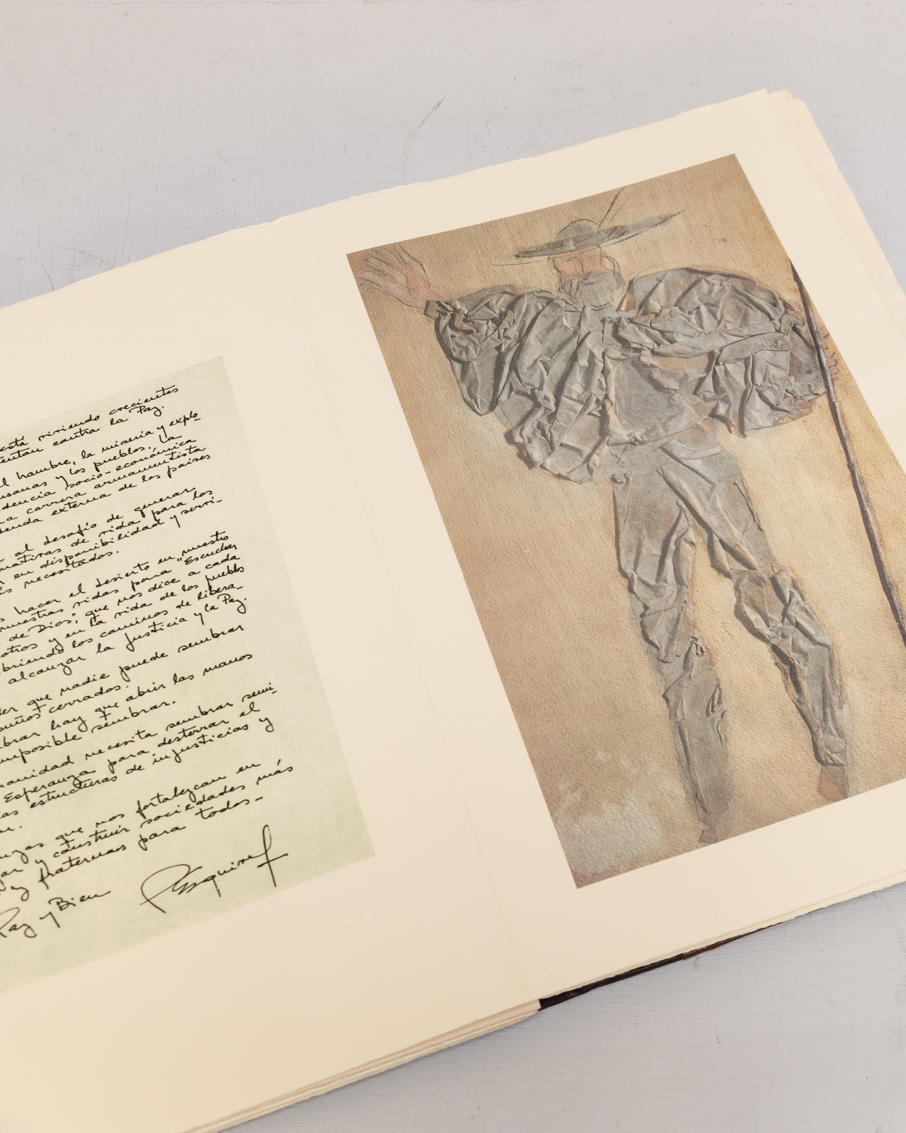 MANZU' GIACOMO (1908 - 1991) Pacem te poscimus omnes. 1988. Libro d'arte. Cm 37,00 x 53,00 x 6,00. CVIII/CC. Raccolta di testi di numerose personalità mondiali, tra cui Ronald Reagan, Papa Giovanni Paolo II, Edward Teller, Madre Teresa e Gorbaciov, pubblicata privatamente per raccogliere fondi per le Nazioni Unite. Libro realizzato su iniziativa del Ministero degli Affari Esteri, ABI, Confindustria e IRI. Collaborazione dell'International Committee "Science for Peace". Editore e stampatore: Il Cigno Edizioni d'Arte-Editrice Galileo Galilei, Roma. Edizione totale: 200 esemplari tirati su carta filigranata speciale per incisioni con il procedimento dell'acquaforte e dell'acquatinta su torchi a mano. I 20 disegni di Giacomo Manzù sono stati stampati in tipolitografia. Fa parte integrante dell'opera, con la stessa numerazione, un bassorilievo appositamente eseguito per questa edizione da Giacomo Manzù. In copertina un'incisione di Giacomo Manzù su lastra (12x12 cm). Entro custodia originale. Lievi difetti.