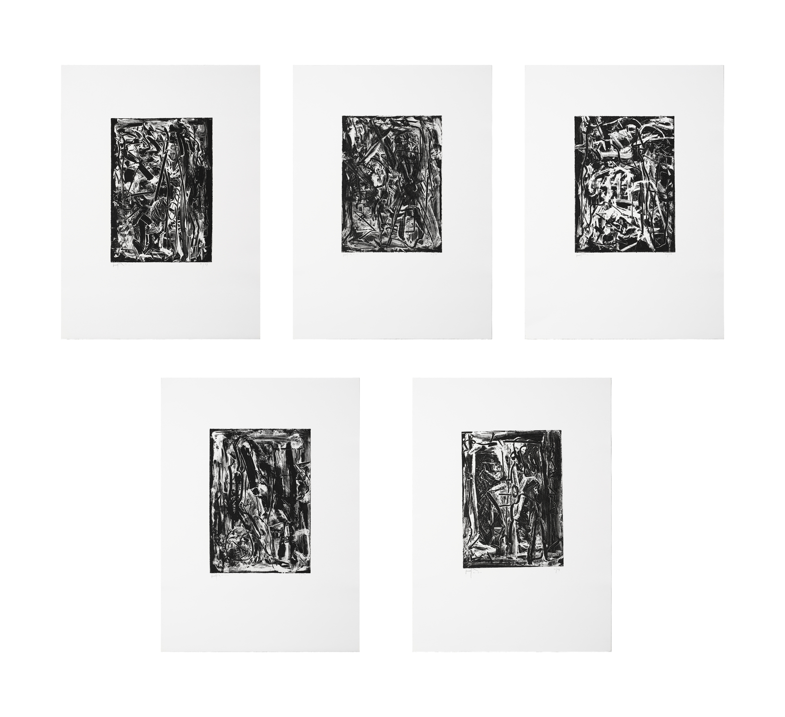 VEDOVA EMILIO (1919 - 2006) Specchi (cartella completa). 1983. Acquaforte. Cm 50,00 x 70,00. 81/99. Lotto composto da n.5 acqueforti (Op.1; Op.2; Op.3; Op.4; Op.5). Dimensione lastra: 37x25.3 cm. Ogni foglio presenta firma, titolo, anno e tiratura in basso a matita. Edizione totale: 99 esemplari numerati da 1 a 99 + 10 p.a. Carta a mano Magnani di Pescia. Pubblicazione: Catalogo dell'opera grafica di Emilio Vedova 1958-1990, p.27. Presente cartella originale e colophon. Cornice presente