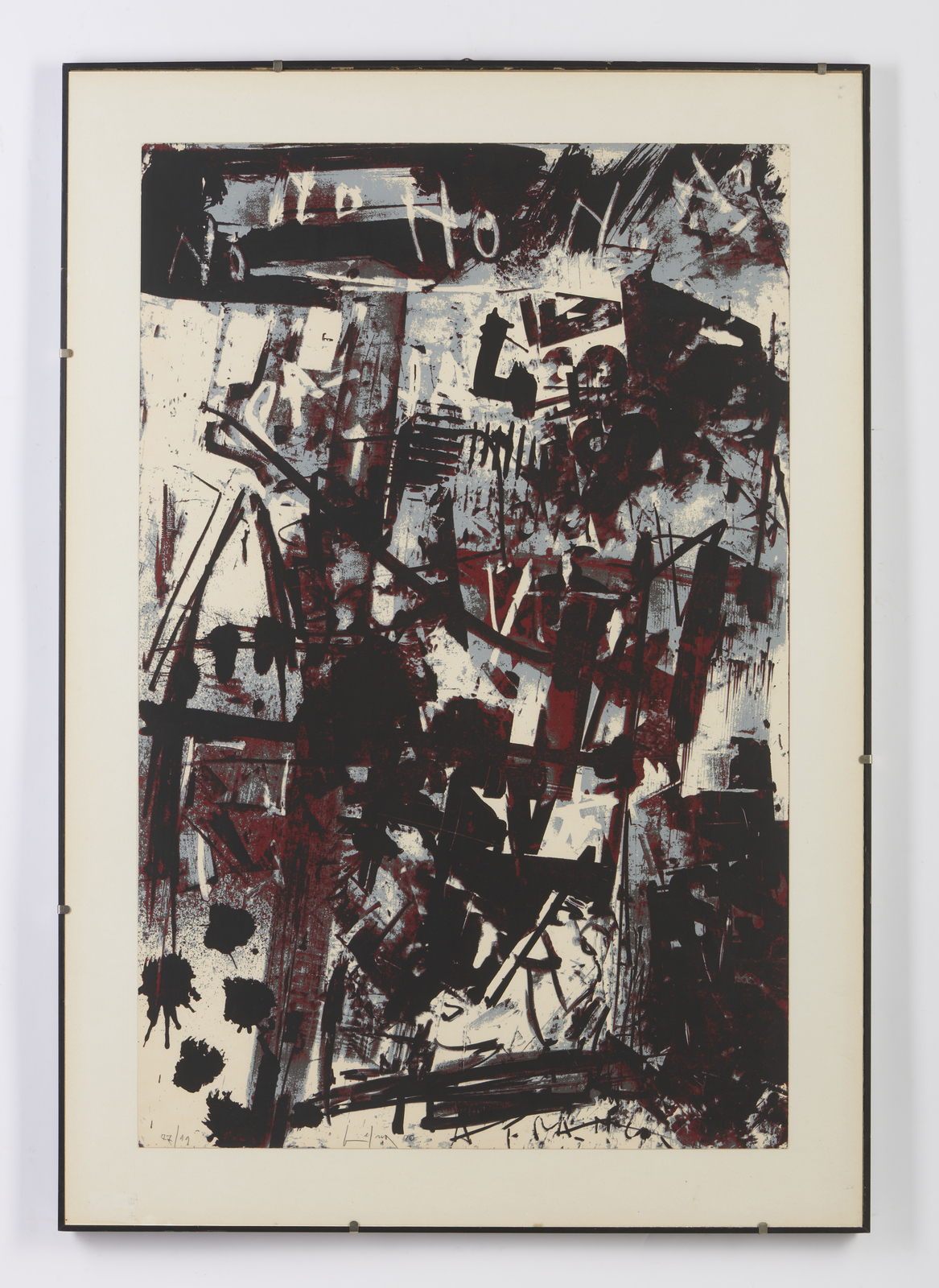 VEDOVA EMILIO (1919 - 2006) A Franco. 1970. Serigrafia. Cm 45,00 x 70,00. 77/99. Tiratura e firma in basso a sinistra a matita. Titolo a stampa in basso al centro. Edizione totale: 99 esemplari numerati da 1 a 99. Cornice presente