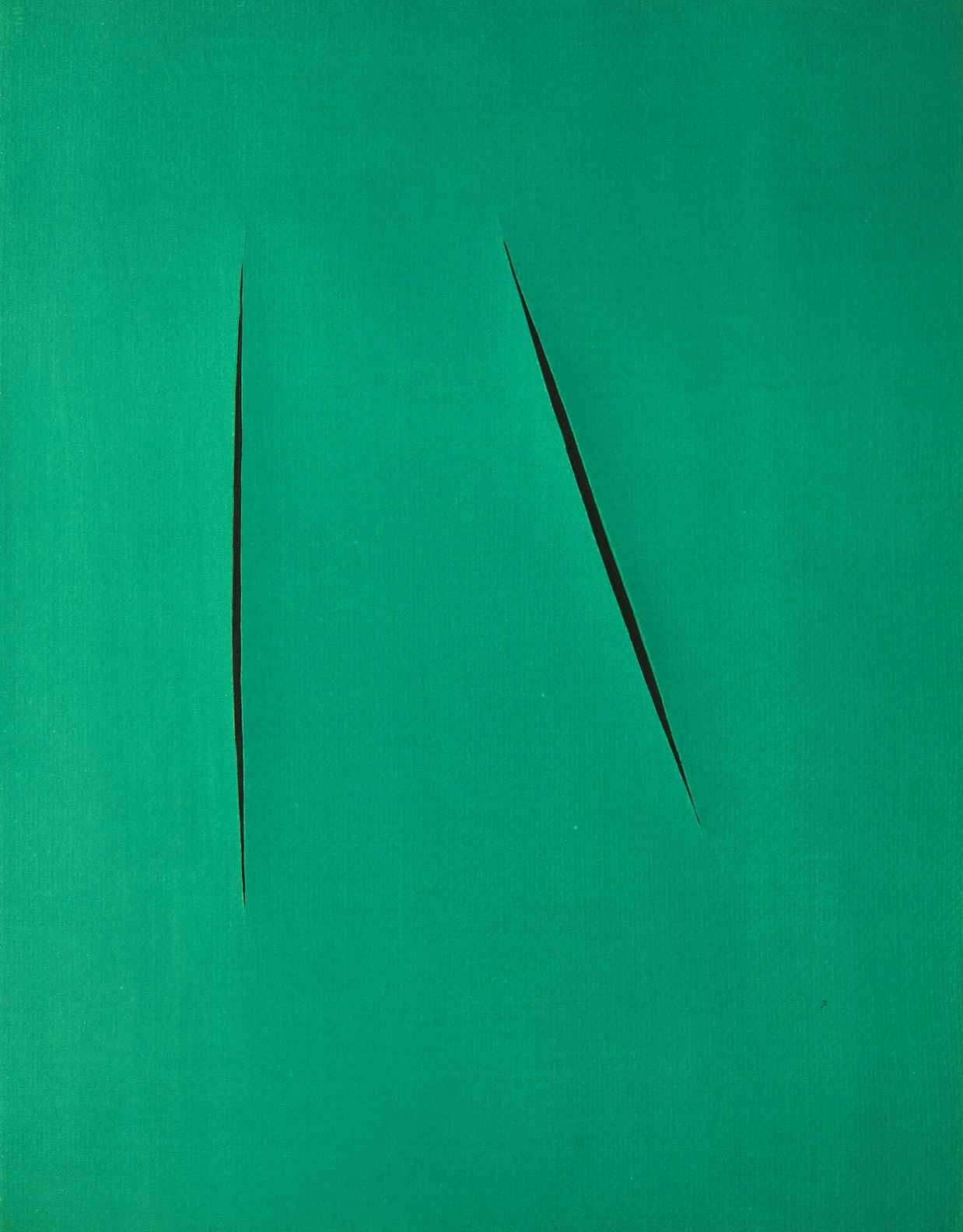 FONTANA LUCIO (1899 - 1968) Concetto spaziale. 1959. Pochoir su carta. Cm 24,40 x 31,50. Opera proveniente da XX siècle. Psychologie de la technique. N° 12. Maggio-giugno 1959. Edizione totale: 1500 esemplari. Editore: San Lazzaro, Paris, 1959. Realizzate a mano da Daniel Jacomet, Paris.