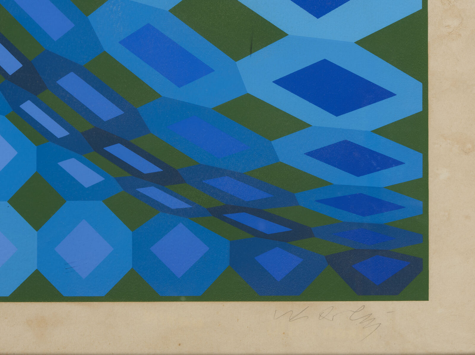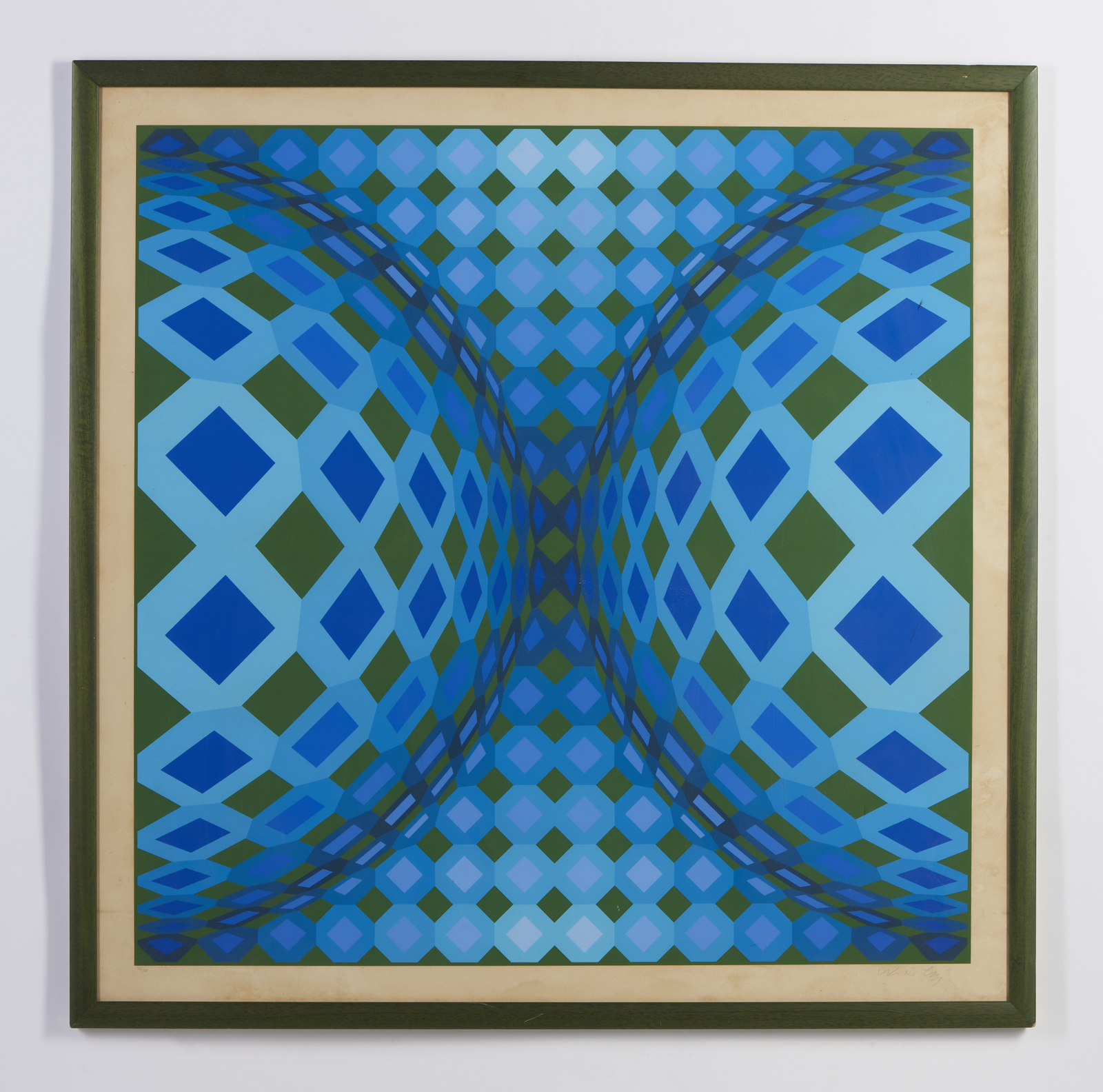 VASARELY VICTOR (1906 - 1997) Okata - cheyt. 1975. Serigrafia. Cm 83,00 x 83,00. 45/250. Tiratura e firma in basso a matita. Timbro a secco Denise René editeur in basso a sinistra. Edizioni Denise René, Parigi. Pubblicazione: Vasarely Catalogue Raisonee REF 266. Lievi difetti. Cornice presente