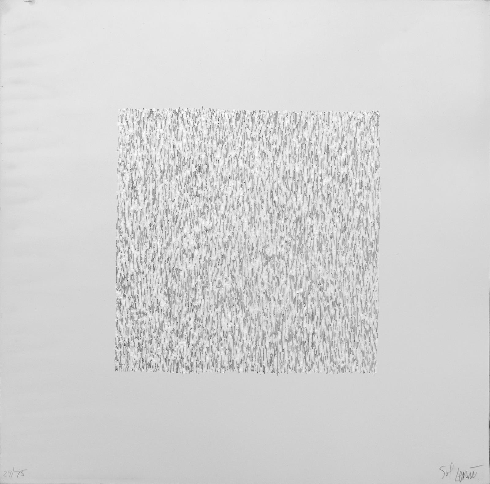 LEWITT SOL (1928 - 2007) Vertical Lines, Not Touching. 1970. Litografia. Cm 50,00 x 50,00. 29/75. Firma e tiratura in basso a matita. Editore: Galerie Yvon Lambert, Paris. Stampatore: Daniel Jacomet et Cie., Paris. Edizione totale: 75 esemplari + AP + TP. Opera registrata Sol LeWitt Prints Catalogue Raisonné con il seguente numero d'inventario: #1970.05. Pubblicazione: Sol LeWitt: Prints 1970-1986, Tate Gallery, Londra. Sitografia: https://www.yvon-lambert.com/products/sol-lewitt-vertical-lines-not-touching-1971 ; https://www.moma.org/collection/works/65215