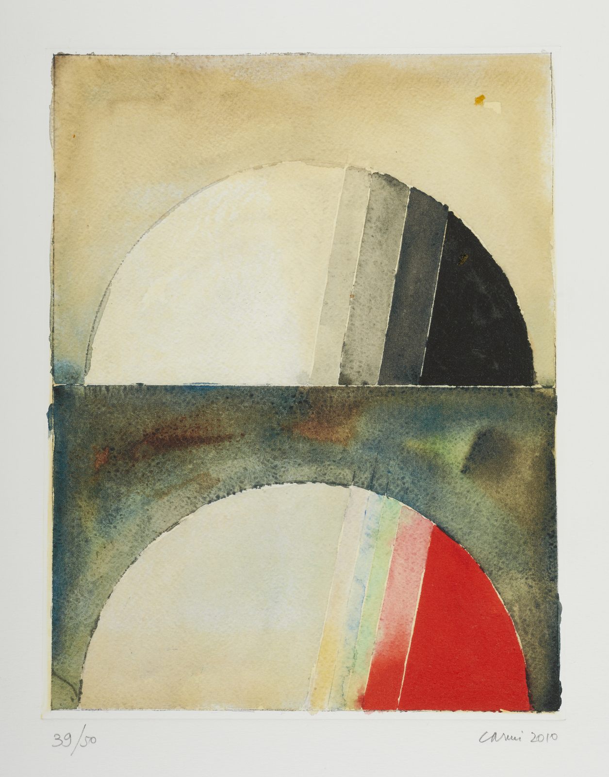 CARMI EUGENIO (1920 - 2016) Senza titolo. 2010. Acquaforte e acquatinta. Cm 40,50 x 54,00. 39/50. Tiratura, anno e firma in basso a matita. Timbro a secco Stamperia Berardinelli, Verona. Dimensione lastra: 36x28 cm.
