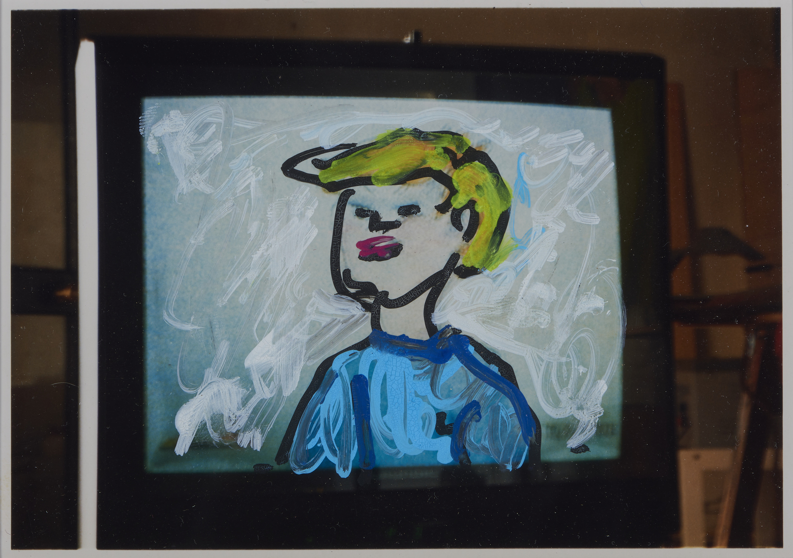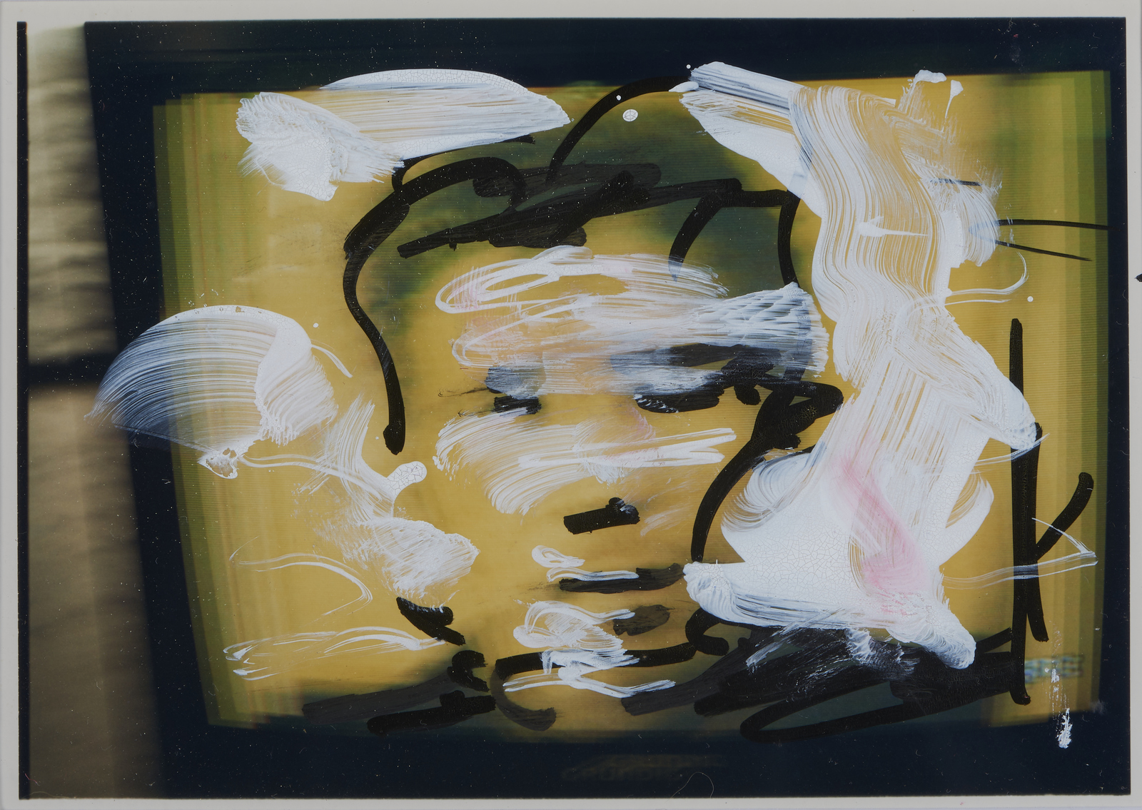 SCHIFANO MARIO (1934 - 1998) Senza titolo. Fotografia ritoccata a mano. Cm 17,00 x 12,00. Ogni fotografia, al retro, presenta firma e timbro Galleria Mazzoli, Modena. Provenienza: Galleria Mazzoli, Modena; Collezione privata, Modena. Cornice presente