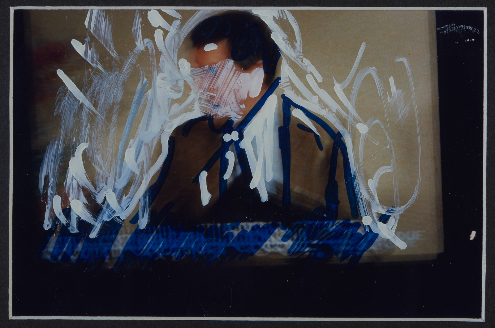 SCHIFANO MARIO (1934 - 1998) Senza titolo. Fotografia ritoccata a mano. Cm 17,00 x 12,00. Ogni fotografia, al retro, presenta firma e timbro Galleria Mazzoli, Modena. Provenienza: Galleria Mazzoli, Modena; Collezione privata, Modena. Cornice presente