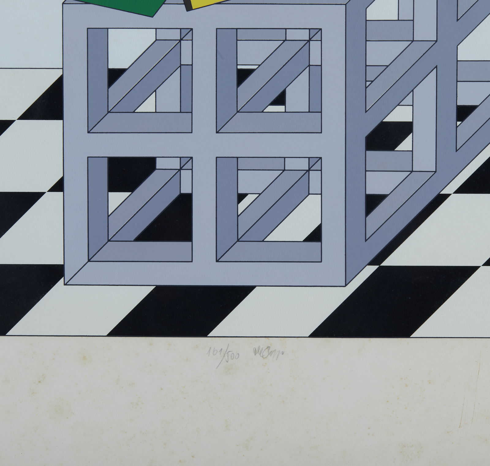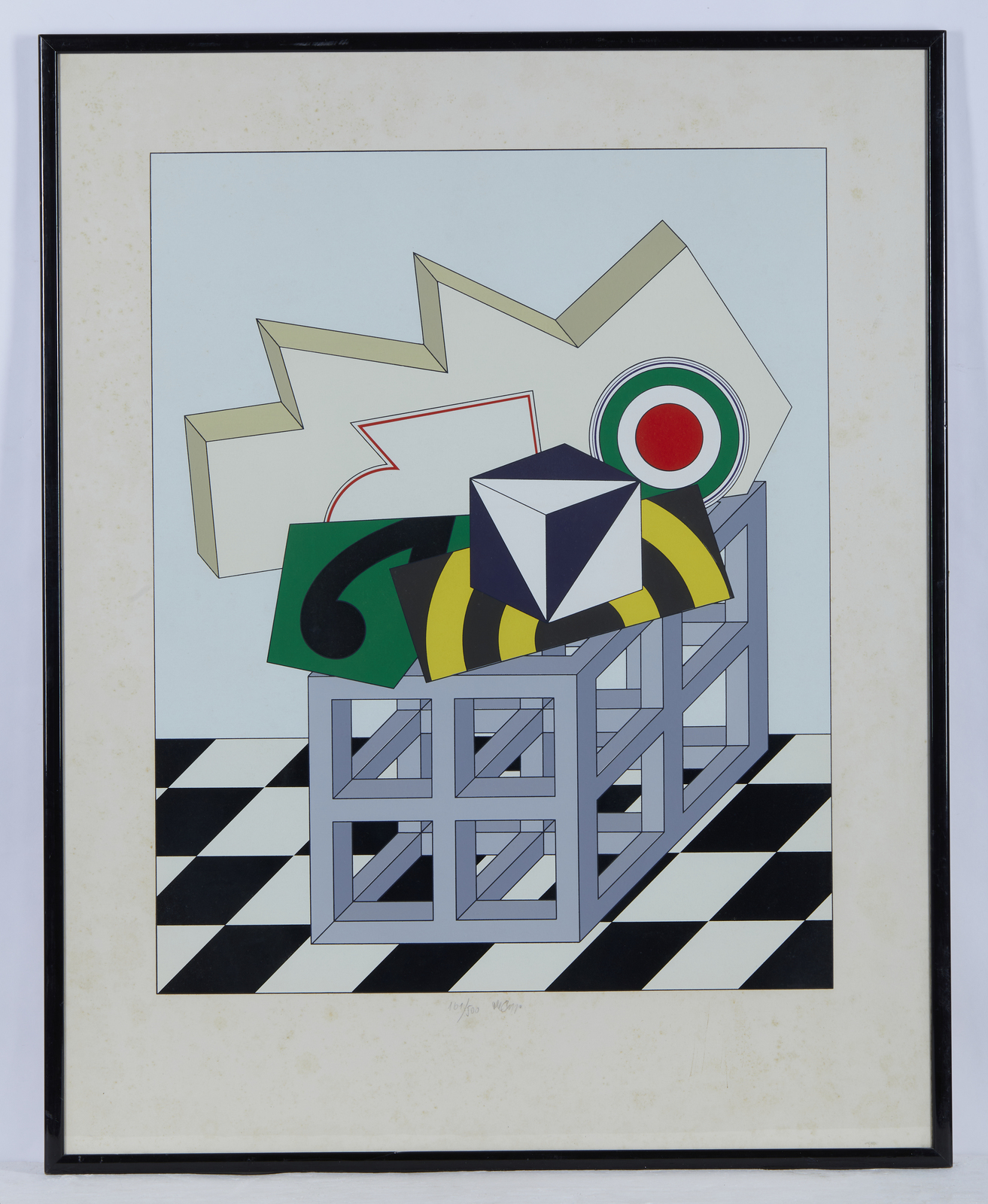 DEL PEZZO LUCIO (1933 - 2020) Senza titolo. Serigrafia. Cm 70,00 x 87,00. 101/500. Tiratura e firma in basso al centro a matita. Timbro a secco Plura Edizioni in basso a sinistra. Difetti. Cornice presente