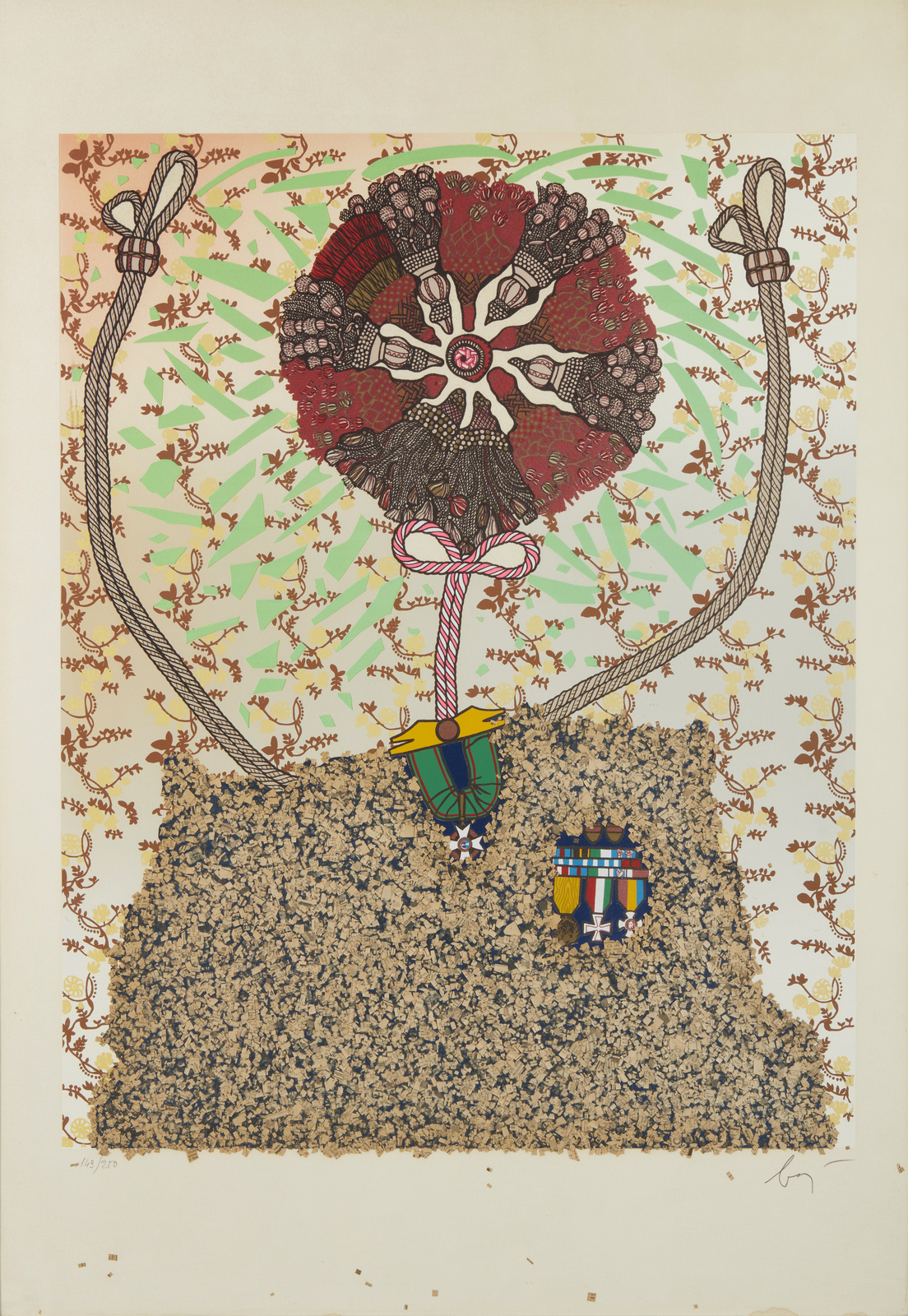 BAJ ENRICO (1924 - 2003) Marceline Desbordes-Valmore. 1975. Litografia e collage. Cm 70,00 x 100,00. 149/250. Tiratura e firma in basso a matita. Edizione totale: 250 esemplari numerati da 1 a 250, 50 esemplari numerati da H.C. I a H.C. L. Pubblicazione: Baj. Catalogo generale delle stampe originali, Electa, 1986, il. n. 465 pag. 134. Si ringrazia Roberta Cerini Baj per aver contribuito alla stesura della scheda. Lievi difetti. Cornice presente