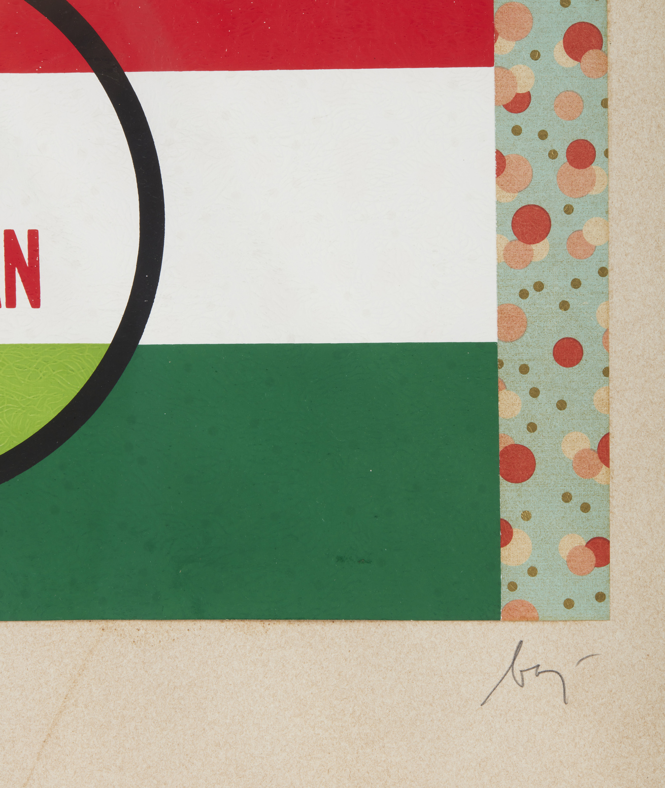 BAJ ENRICO (1924 - 2003) Kiss me-I'm Italian. . 1972. Litografia. Cm 66,00 x 78,00. 62/100. Tiratura e firma in basso a matita. Edizione totale: 100 esemplari numerati da 1 a 100; 20 esemplari numerati da I a XX. Pubblicazione: Baj. Catalogo generale delle stampe originali,, Electa, 1986, il. n. 258 pag. 114. Difetti. Cornice presente