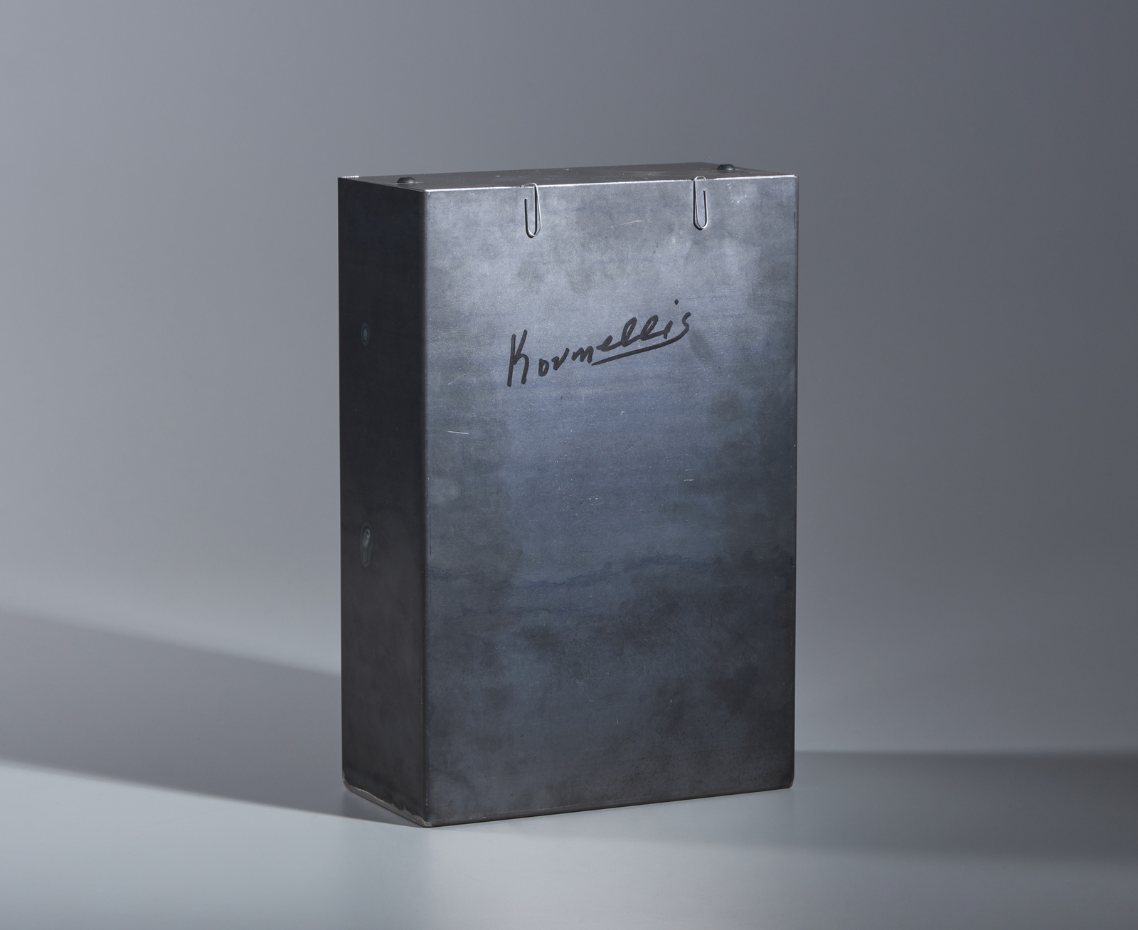KOUNELLIS JANNIS (n. 1936) Senza titolo. 2014. Ferro, carta dipinta a mano e fermagli.. Cm 20,00 x 30,00 x 10,00. 96/100. Firma al retro. Edizione totale: 100 + 9 AP. Opera realizzata dal Maestro per la Fondazione INGM a sostegno del progetto di ricerca "RNA - regolatori nelle risposte immunitarie fisiologiche e patologiche del bambino" . Certificato di autenticità riportante la tiratura e la firma dell'artista. Esposizione: 23-25 Maggio 2014, Spazio Production, Milano.