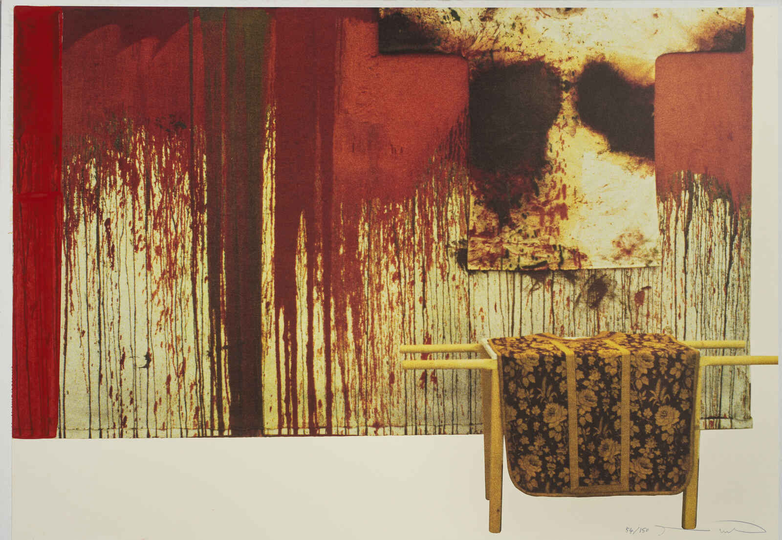 NITSCH HERMANN (1938 - 2022) Dalla cartella Ubermalte Bild. 1991. Intervento su litografia.. Cm 101,00 x 71,00. 54/150. Tiratura e firma in basso a matita. Carta acquarello 300 gr. delle Cartiere Fedrigoni. Editore: Domus Jani, Verona. Edizione totale: 150 esemplari in numeri arabi da 1 a 150+30 esemplari in numeri romani da I a XXX+20 prove d'artista (a.p.) numerati a.p. da 1 a 20+ 10 esemplari Hors Commerce (H.C.) e numerati H.C. da 1 a 10.