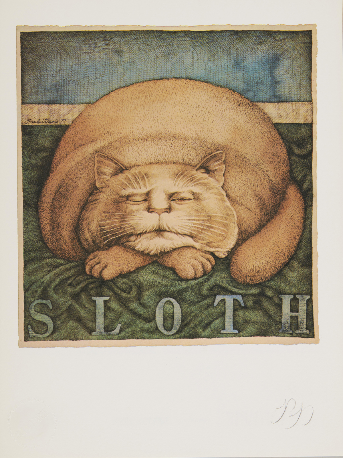 Per la serie " I sette peccati capitali" (7): Fernando Botero. Lussuria. 1006/5000. Firma in basso a destra; Bruno Caruso. Gola. 1040/5000. Firma in basso a destra; Paul Davis. Accidia. 1593/5000. Firma in basso a destra; Riccardo Tommaso Ferroni. Superbia. 1152/5000. Firma in basso a destra; Francesco Menzio. Invidia. 2012/5000. Firma in basso a sinistra; Armando De Stefano. Avarizia. 390/5000. Firma e anno in basso a sinistra. 1978; Emilio Tadini. Ira. 1907/5000. Firma in basso al centro.