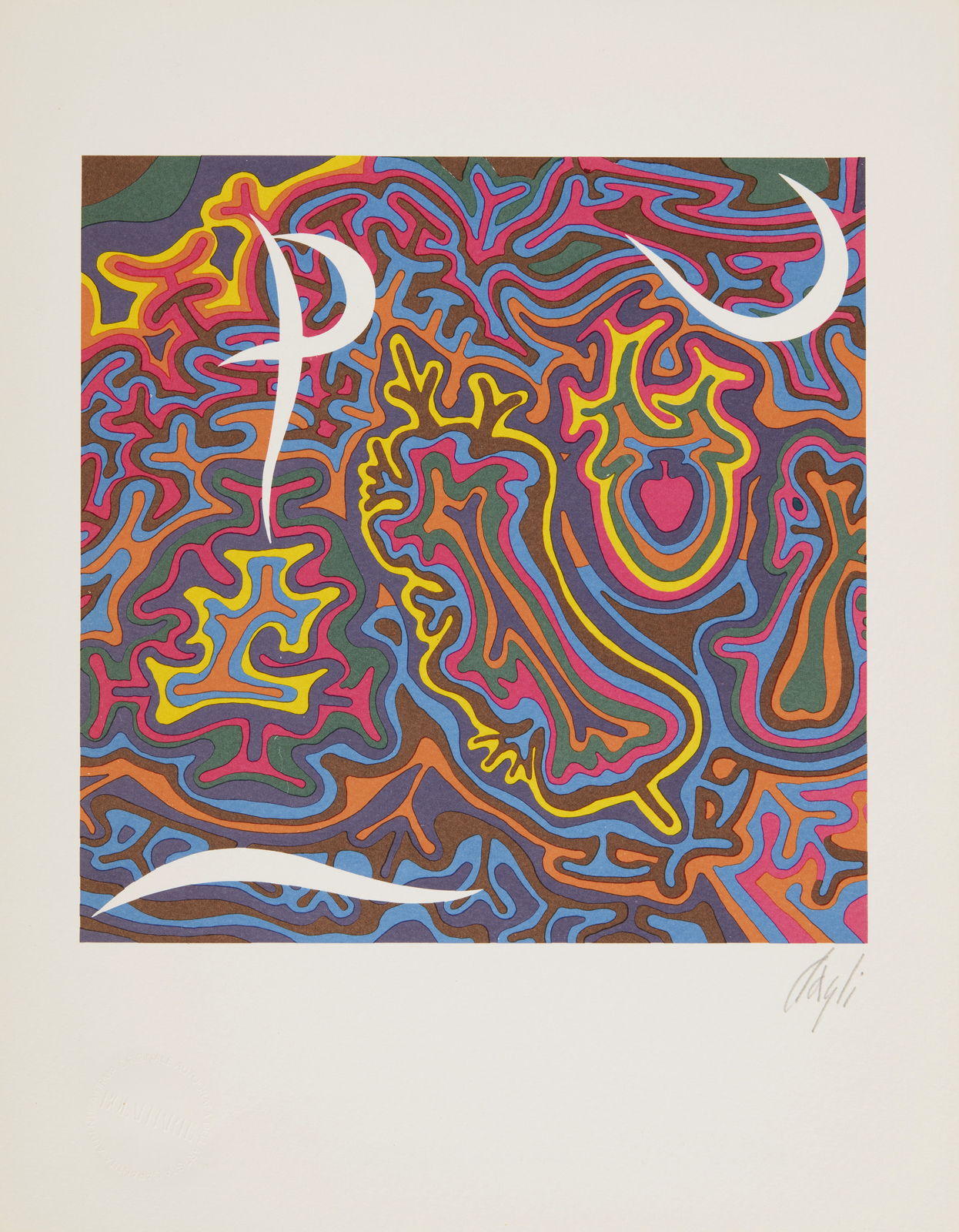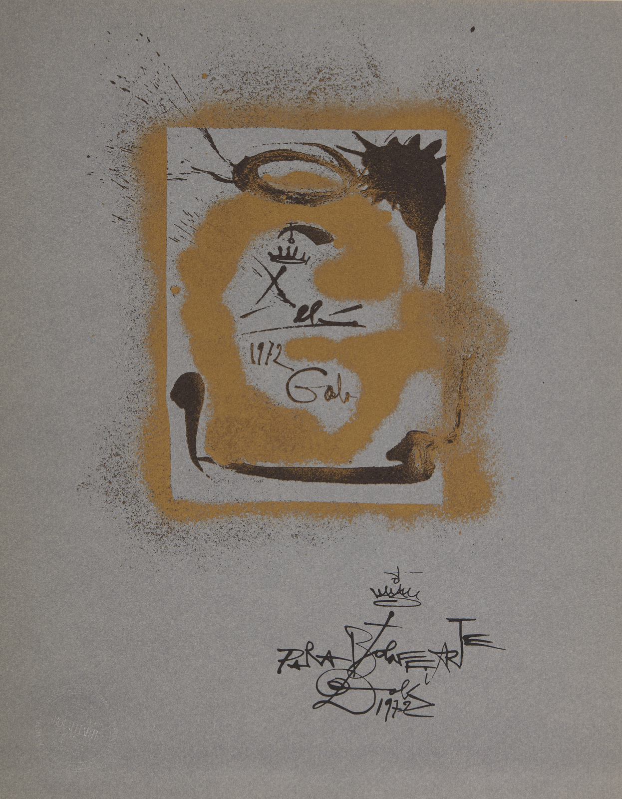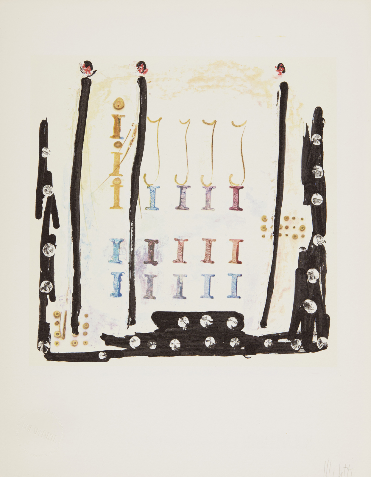 Per la serie “L’alfabeto” (24): Lucio Del Pezzo. A. 4749/5000. Firma in basso a destra; Mario Ceroli. B. 3745/5000. Firma e anno in basso a destra. 1971; Roberto Crippa. C. 1210/5000. Firma in basso a destra; Gianni Dova. D. 3740/5000. Firma in basso a destra; Andrea Cascella. E. 950/5000. Firma in basso a destra; Jean Michel Folon. F. 2057/5000. Firma in basso a destra; Salvador Dalì. G. 1670/5000. Firma e anno in basso a destra. 1972; Giuseppe Santomaso. H. 1531/5000. Firma in basso a destra; Fausto Melotti. I. 1096/5000. Firma in basso a destra; Cesare Peverelli. J. 862/5000. Firma in basso a destra; Salvatore Fiume. K. 314/5000. Firma in basso a destra; Pietro Consagra. L. 3512/5000. Firma in basso a destra; Max Bill. N. 550/5000. Firma in basso a destra; Giorgio De Chirico. O. 980/5000. Firma in basso a destra; Corrado Cagli. P. 545/5000. Firma in basso a destra; César. Q. 1290/5000. Firma in basso a destra; Man Ray. R. 1432/5000. Firma al centro; Graham Sutherland. S. 2553/5000. Firma in basso a sinistra; Giacomo Manzù. T. 3593/5000. Firma in basso a destra; Giuseppe Guerreschi. U. 3195/5000. Firma in basso a destra; Valerio Trubbiani. V. 2047/5000. Firma in basso a destra; Marino Marini. X. 2601/5000. Firma in basso al centro; Pietro Cascella. Y. 2565/5000. Firma in basso a destra; Calder. Z. 850/5000. Firma in basso a destra. Le lettere M e W risultano mancanti.