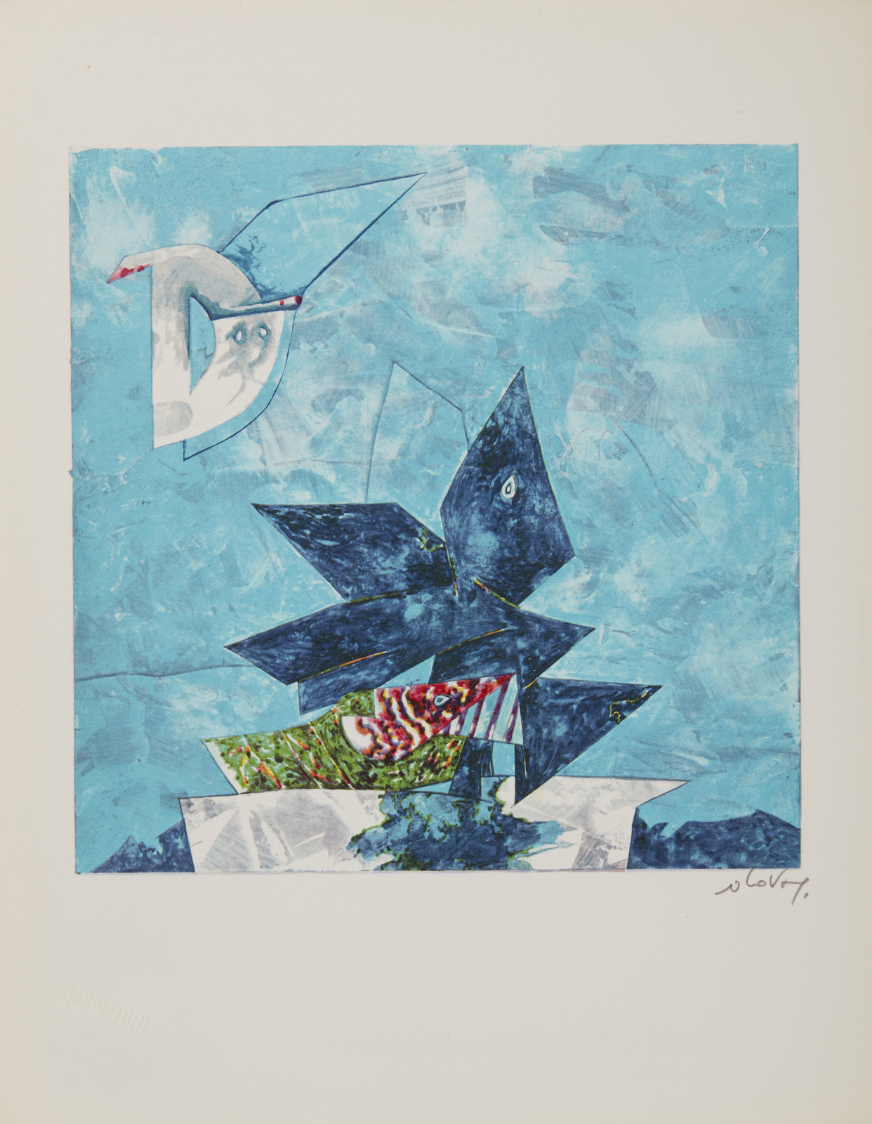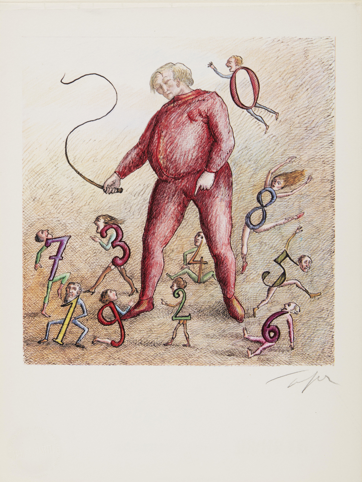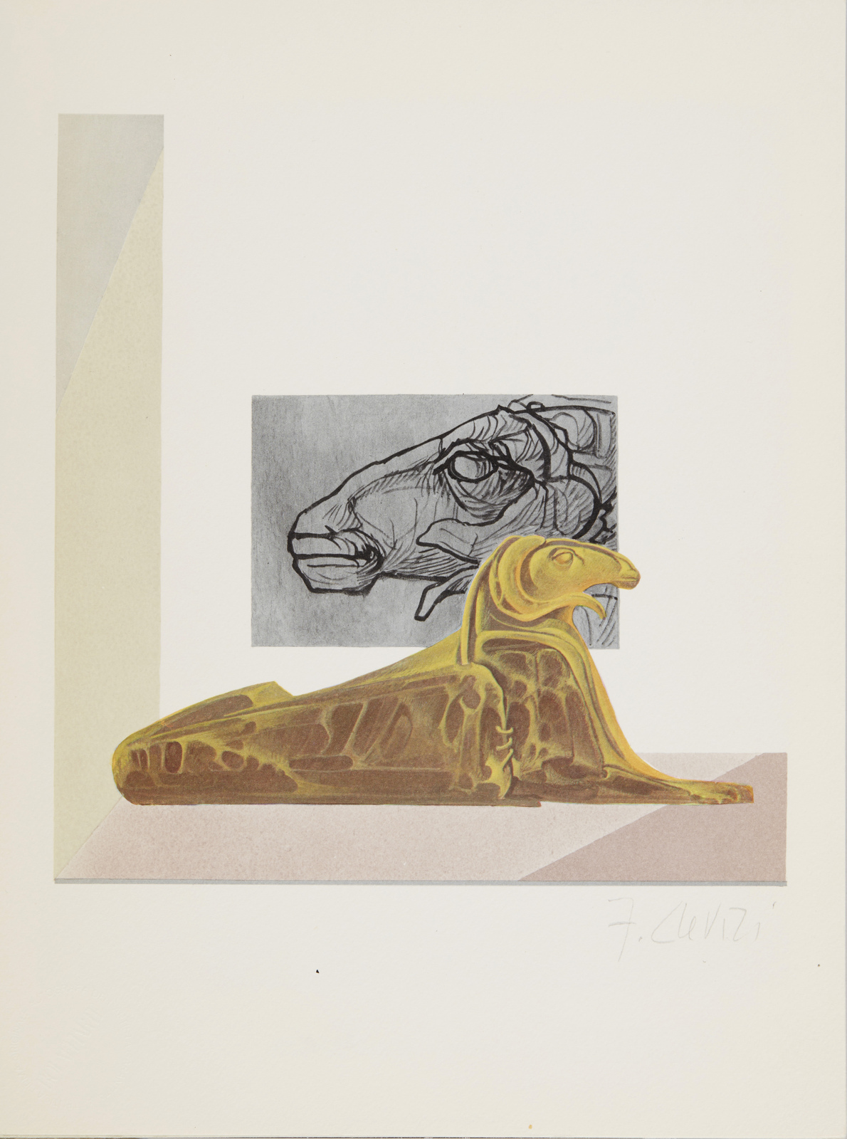 Per la serie “Le sette arti liberali” (8): Ezio Gribaudo. Dialettica. 1049/5000. Firma in basso a destra; Ezio Gribaudo. Dialettica. Tiratura e firma non presente; Hubertus Gojowczyk. Grammatica. 3664/5000. Firma in basso a sinistra; Giuliano Vangi. Musica. 4140/5000. Firma in basso al centro; Roland Topor. Aritmetica. 1424/5000. Firma in basso a destra; Giosetta Fioroni. Astronomia. 1354/5000. Firma in basso al centro; Floriano Bodini. Retorica. 1886/5000. Firma in basso a destra; Piero Guccione. Geometria. 2812/5000. Firma in basso a sinistra.