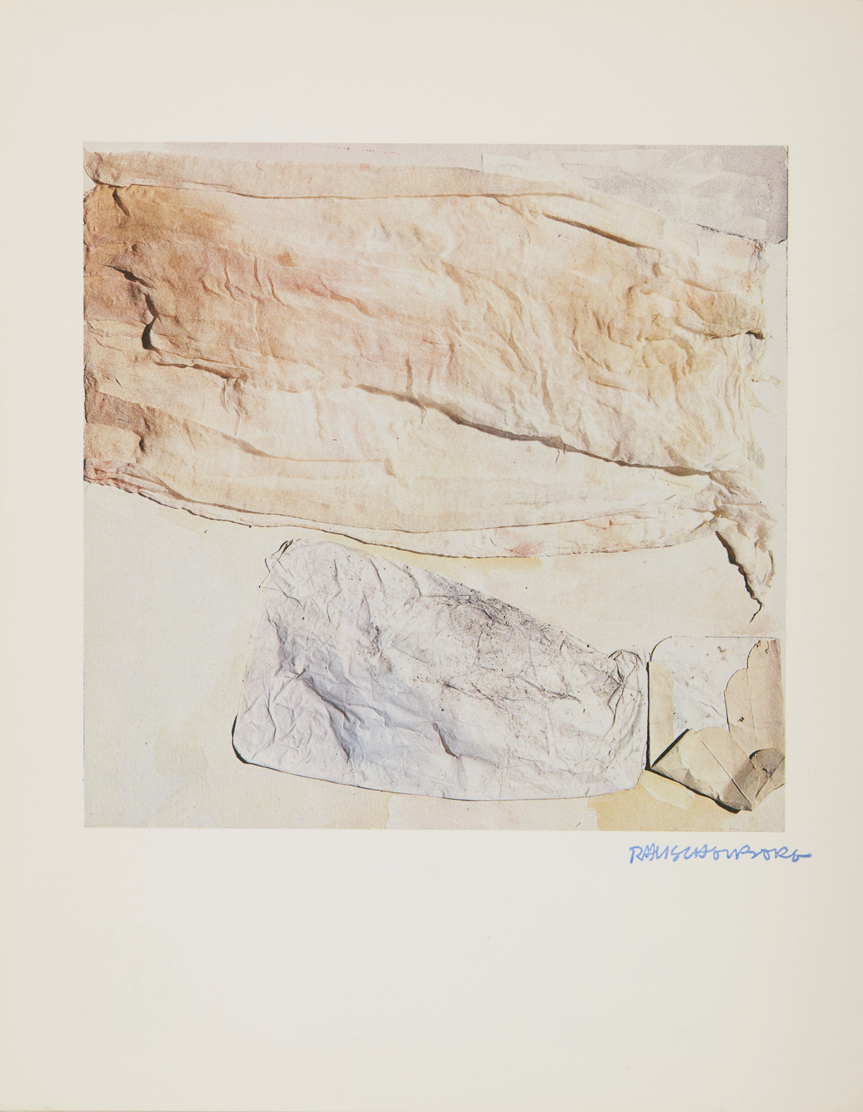 Per la serie “I cinque sensi + 1” (6): Joseph Beuys. L’udito. 484/5000. Firma in basso al centro; Robert Rauschenberg. Il tatto. 3715/5000. Firma in basso a destra; Jim Rosenquist. L’olfatto. 2735/5000. Firma in basso a destra; Mario Schifano. Il gusto. 1920/5000. Firma in basso a destra; Ugo Nespolo. La vista. 993/5000. Firma in basso a destra; Edward Kienholz. Il senso degli affari. 3165/5000. Firma e anno in basso a destra. 1974.