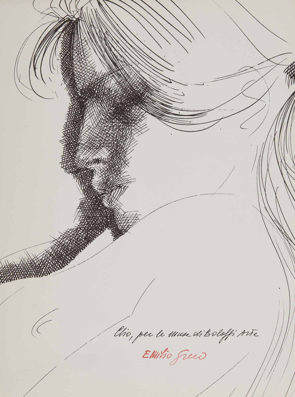 Per la serie “Le nove muse” (9): Sonia Delunay. Euterpe. 1059/5000. Firma in basso al centro; Michele Cascella. Erato. 1252/5000. Firma in basso a destra; Emilio Greco. Clio. 1259/5000. Firma in basso a destra; Lorenzo Tornabuoni. Calliope. 3436/5000. Firma in basso a destra; Brassai. Tersicore. 706/5000. Firma in basso a destra; Mario Merz. Melpomene. 1015/5000. Firma in basso a destra; Tullio Pericoli. Urania. 3253/5000. Firma e anno in basso al centro. 1971; Cesare Zavattini. Talia. 1265/5000. Firma in basso a destra; Domenico Cantatore. Polinnia. 241/5000. Firma in basso a destra.