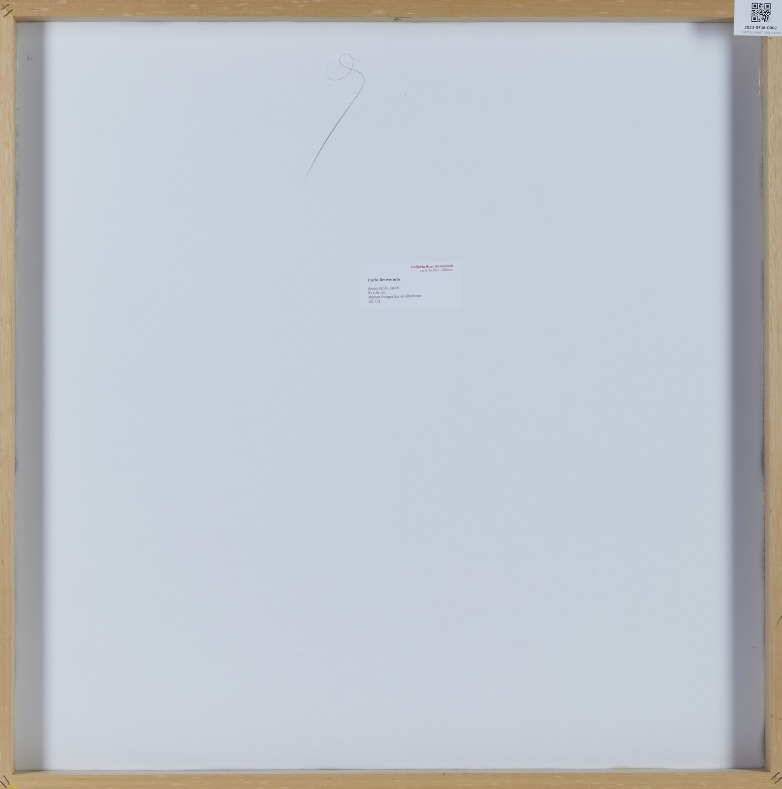 BENVENUTO CARLO (n. 1966) Senza titolo. 2008. Stampa digitale su alluminio. Cm 81,00 x 81,00. 1/3. Al retro cartiglio descrittivo Galleria Suzy Shammah, Milano. Autentica dell'artista su fotografia. Cornice presente