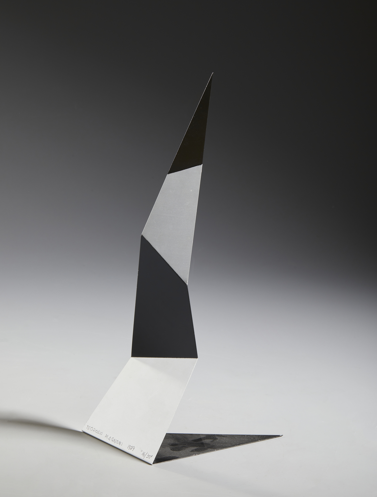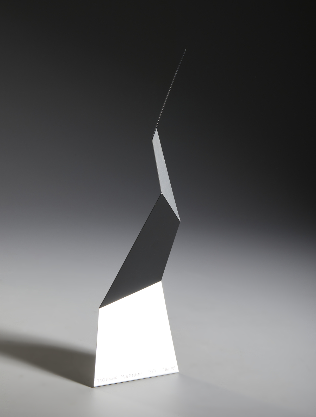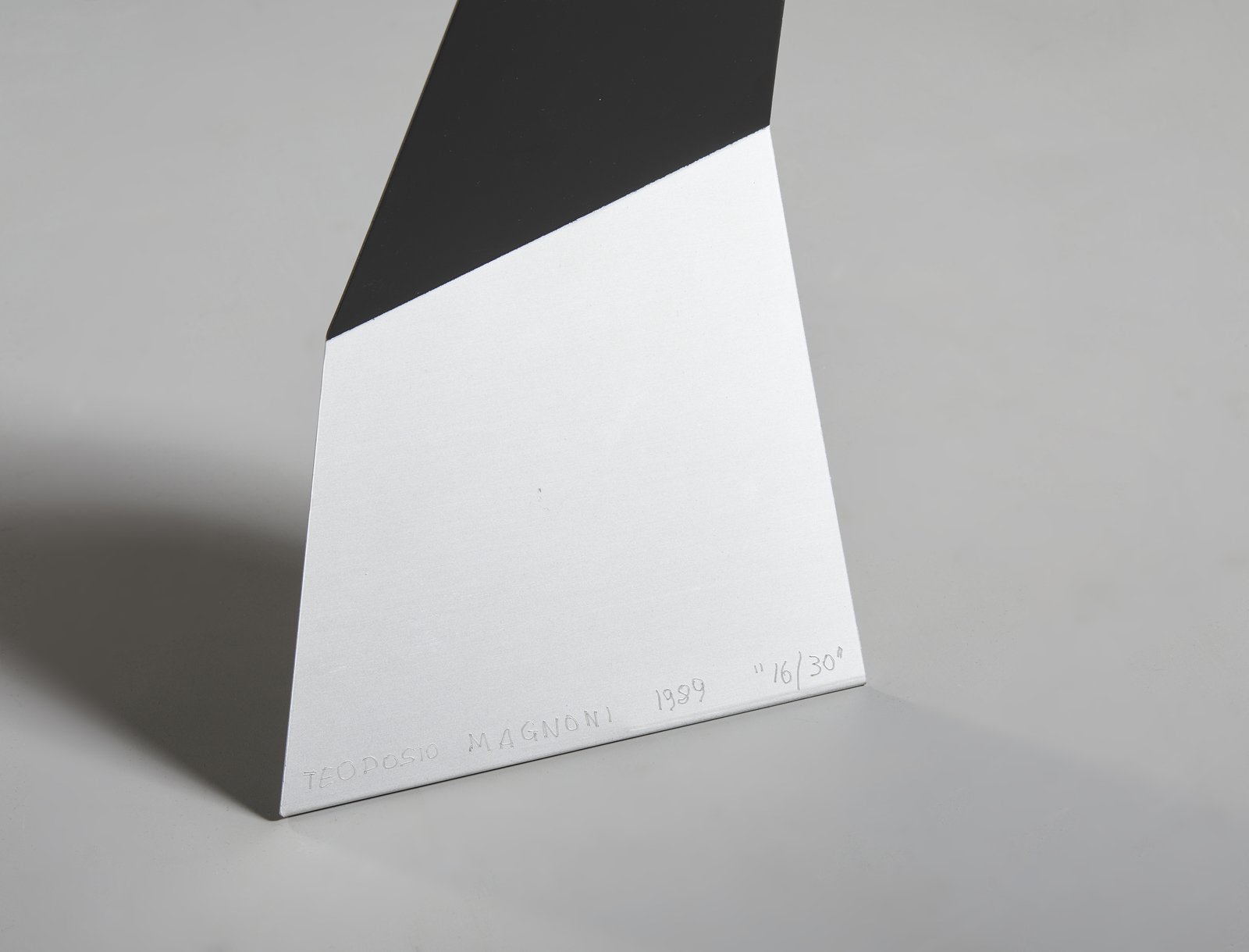 MAGNONI TEODOSIO (n. 1934) Senza titolo. 1989. Alluminio. Cm 13,00 x 41,50 x 18,50. 16/30. Tiratura, firma e anno alla base a incisione. Provenienza: Collezione privata, Trento. Lievi difetti.