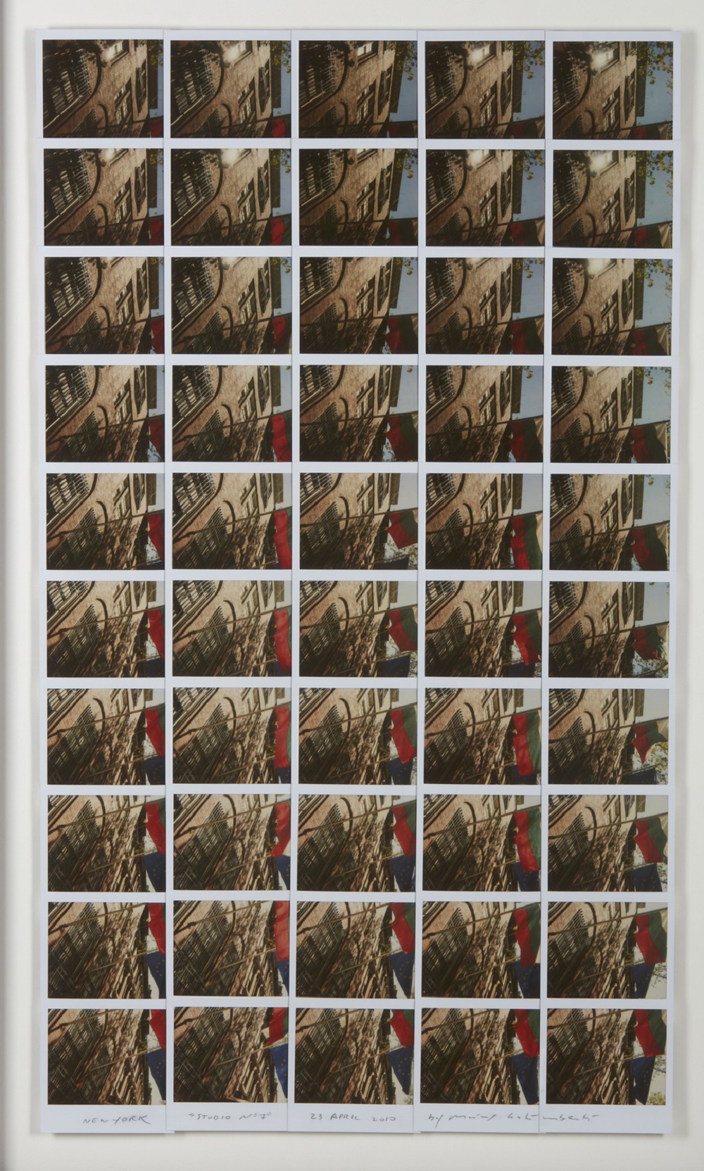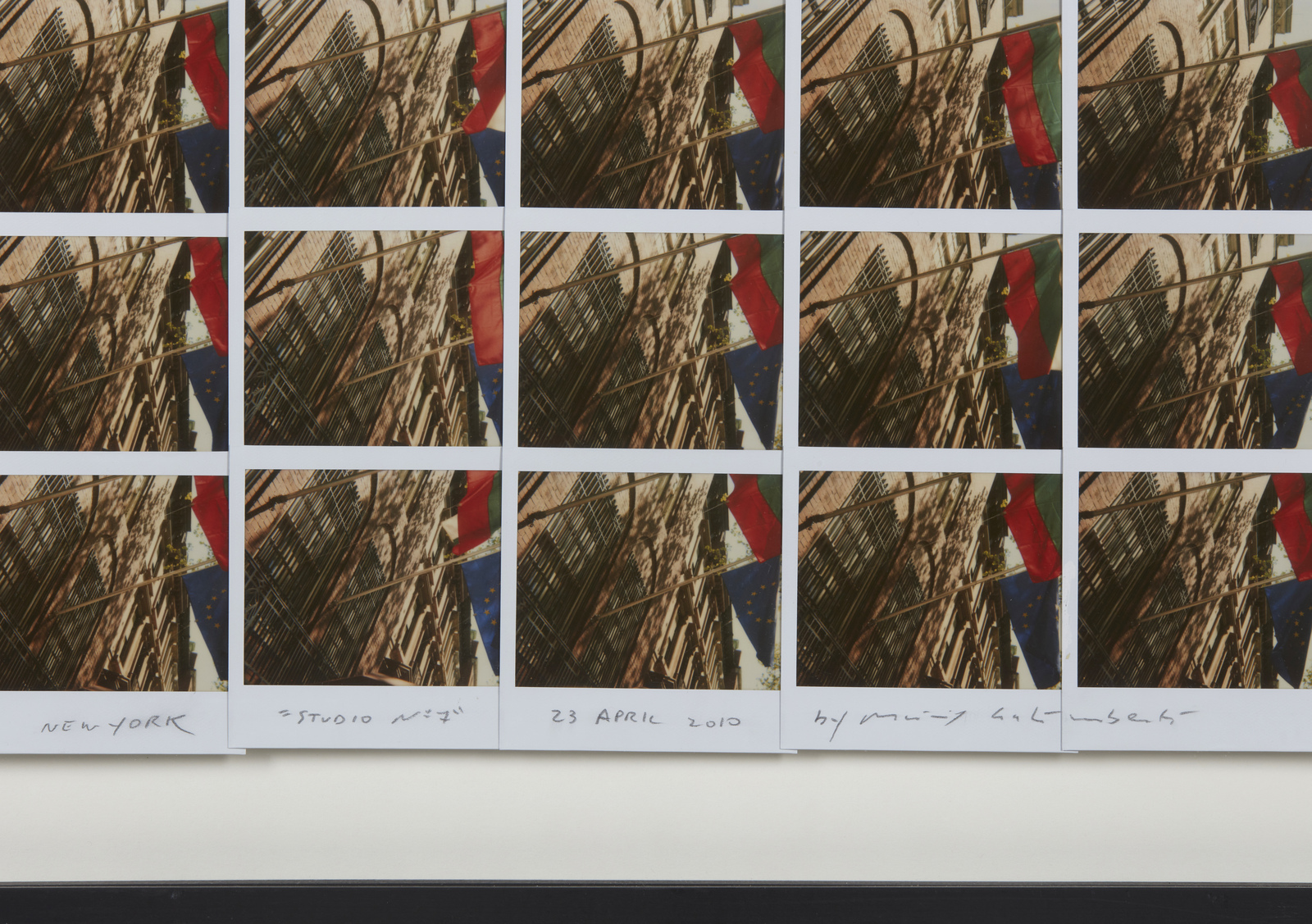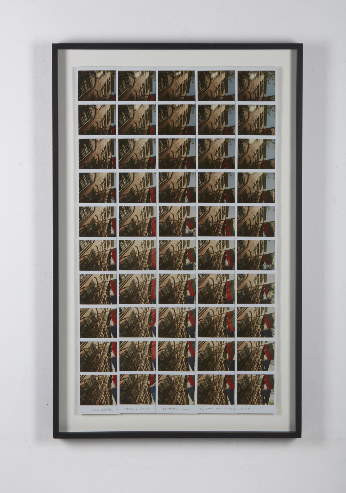 GALIMBERTI MAURIZIO (n. 1956) Studio n° 7. 2010. Mosaico di polaroid. Cm 48,60 x 84,00. Titolo, firma e anno in basso. Opera archiviata presso l'Archivio Nordest. Seregno, come da documentazione fotografica allegata all'opera riportante il relativo numero d'inventario e la firma dell'artista. Cornice presente