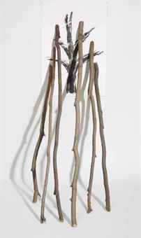 Giuseppe Penone (N. 1947) La velocità del vegetale - Il lento ripetersi della scultura 6 biforcazioni carboncino e carbone su carta e rami di albero cm 100x70,4 (il foglio) dimensioni variabili (i rami) Realizzato nel 1985 titolo, firma e data La velocità del vegetale Il lento ripetersi della scultura 6 biforcazioni Giuseppe Penone 85 (in basso a destra) Provenance L'artista Galerie Elisabeth Kaufmann, Basilea Collezione privata, Svizzera Exhibited Basilea, Galerie Elisabeth Kaufmann, Dahn, Horn, Penone, Ruthenbeck, 26 agosto - 30 settembre 1989, cat.