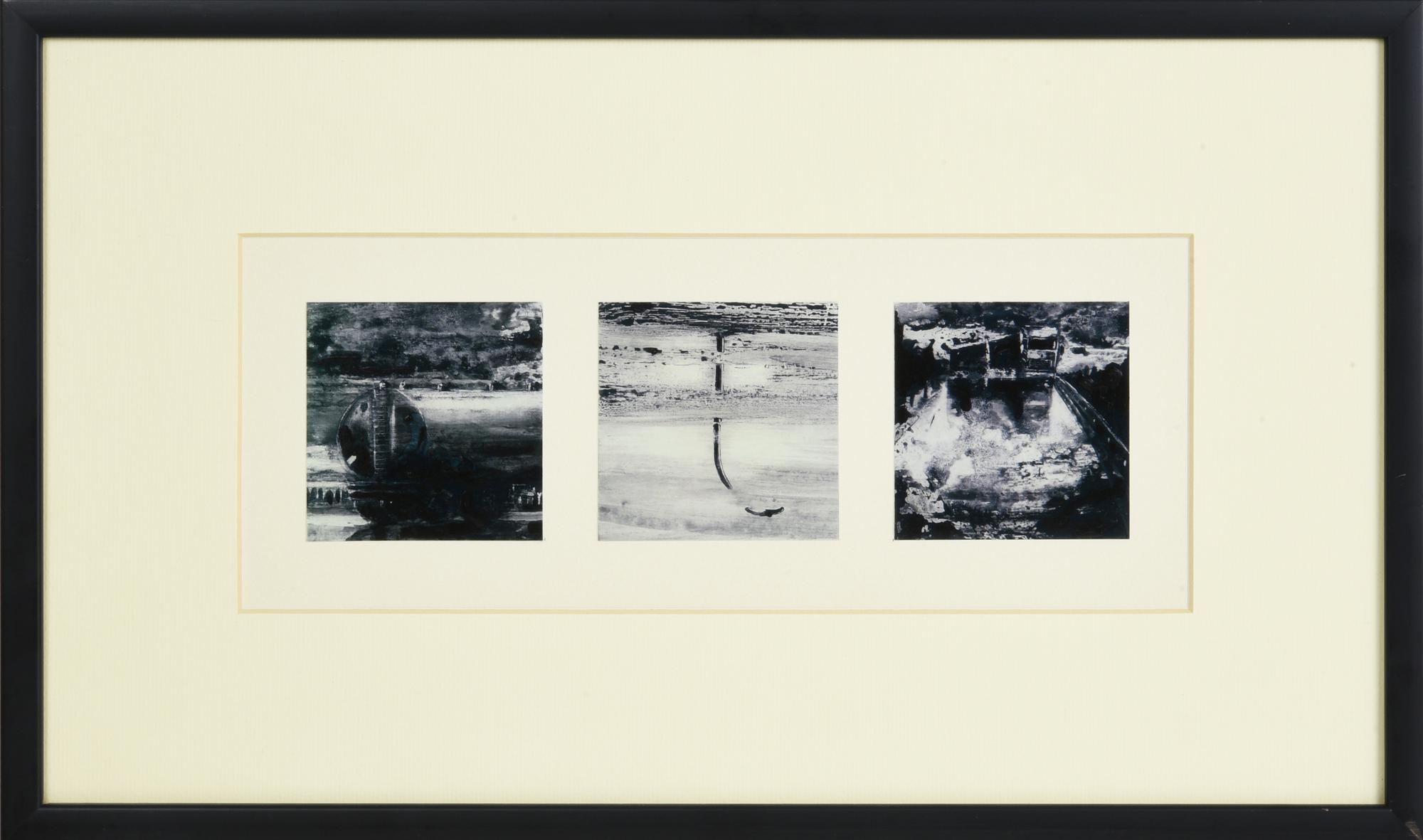 Alessandro Busci (1971) TRITTICO, 2002 olio e smalto su carta, cm 12,5x32 sul...