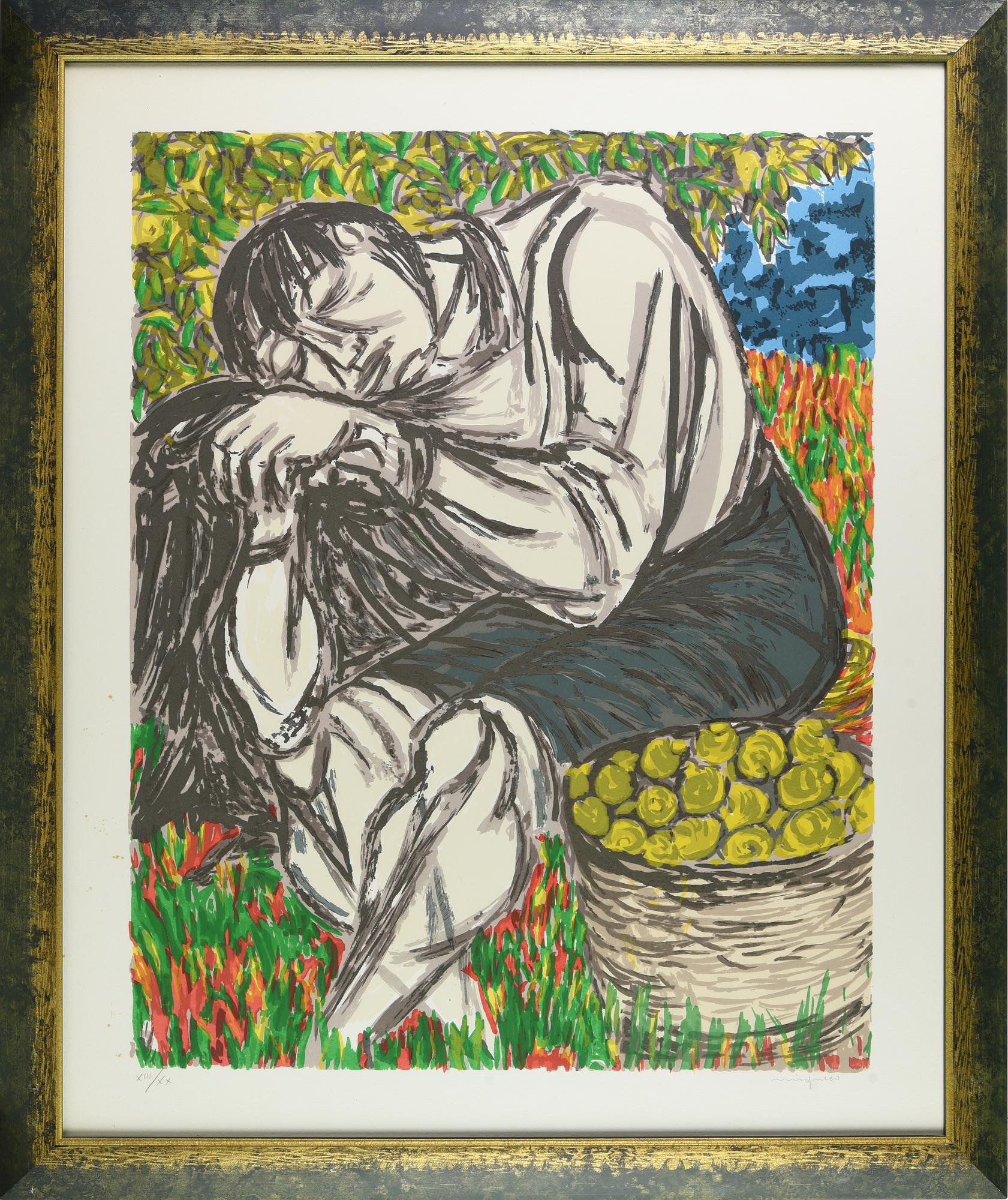 Giuseppe Migneco (1908 - 1997) CONTADINO NEL LIMONETO, 1977 serigrafia, cm...