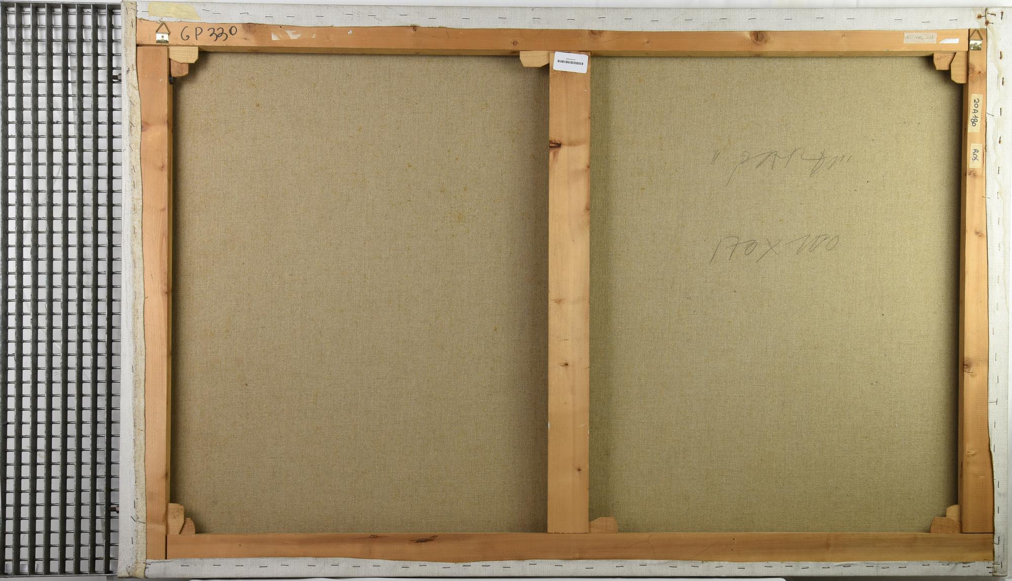 tecnica mista su tela con assemblaggio in metallo, cm 100x170