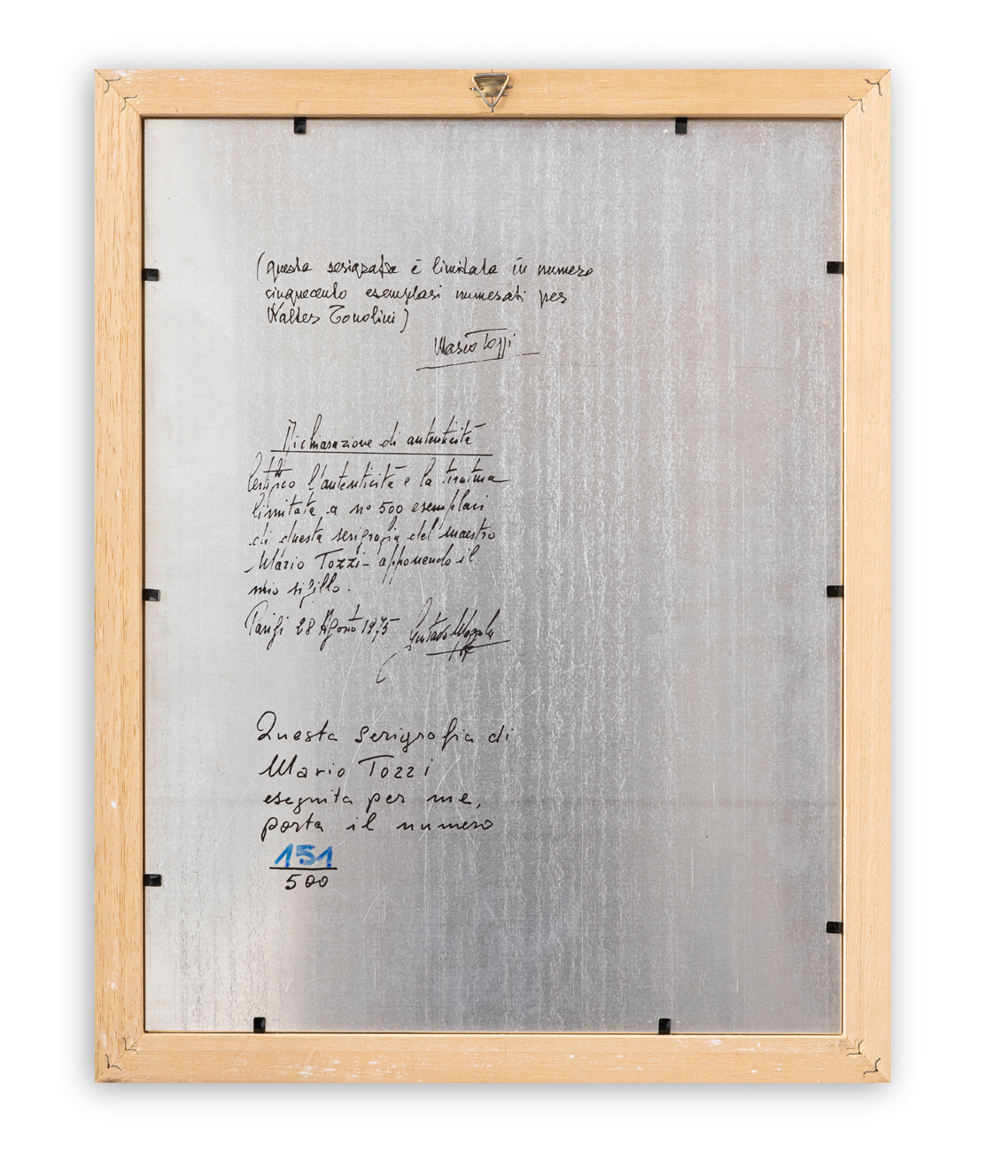 Opera edita in 500 esemplari per Walter Tonolini, come da iscrizione al retro (Esemplare 151/500)
