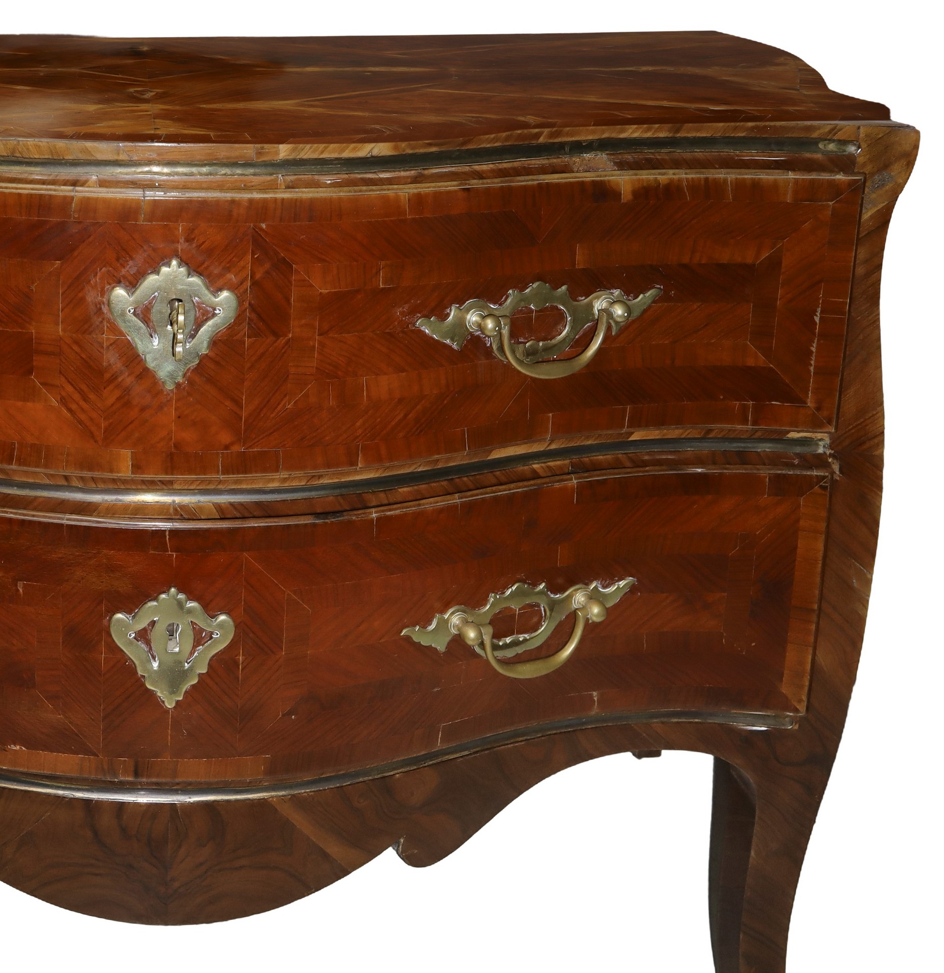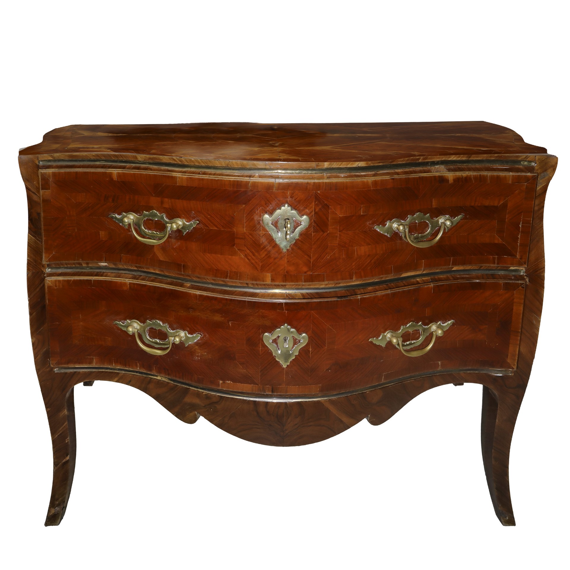 Cassettone Luigi XV, Sicilia, 18° secolo H cm 92 x132x64Mosso sul fronte e sui lati. Due cassetti in legno di palissandro con lastronatura a giochi di legno sul fronte, sul piano e sui lati. Maniglieria in ottone. Cassetti sottolineati da carta di spagna incassata (rame sottile)Mosso sul fronte e sui lati. Due cassetti in legno di palissandro con lastronatura a giochi di legno sul fronte, sul piano e sui lati. Maniglieria in ottone. Cassetti sottolineati da carta di spagna incassata (rame sottile)