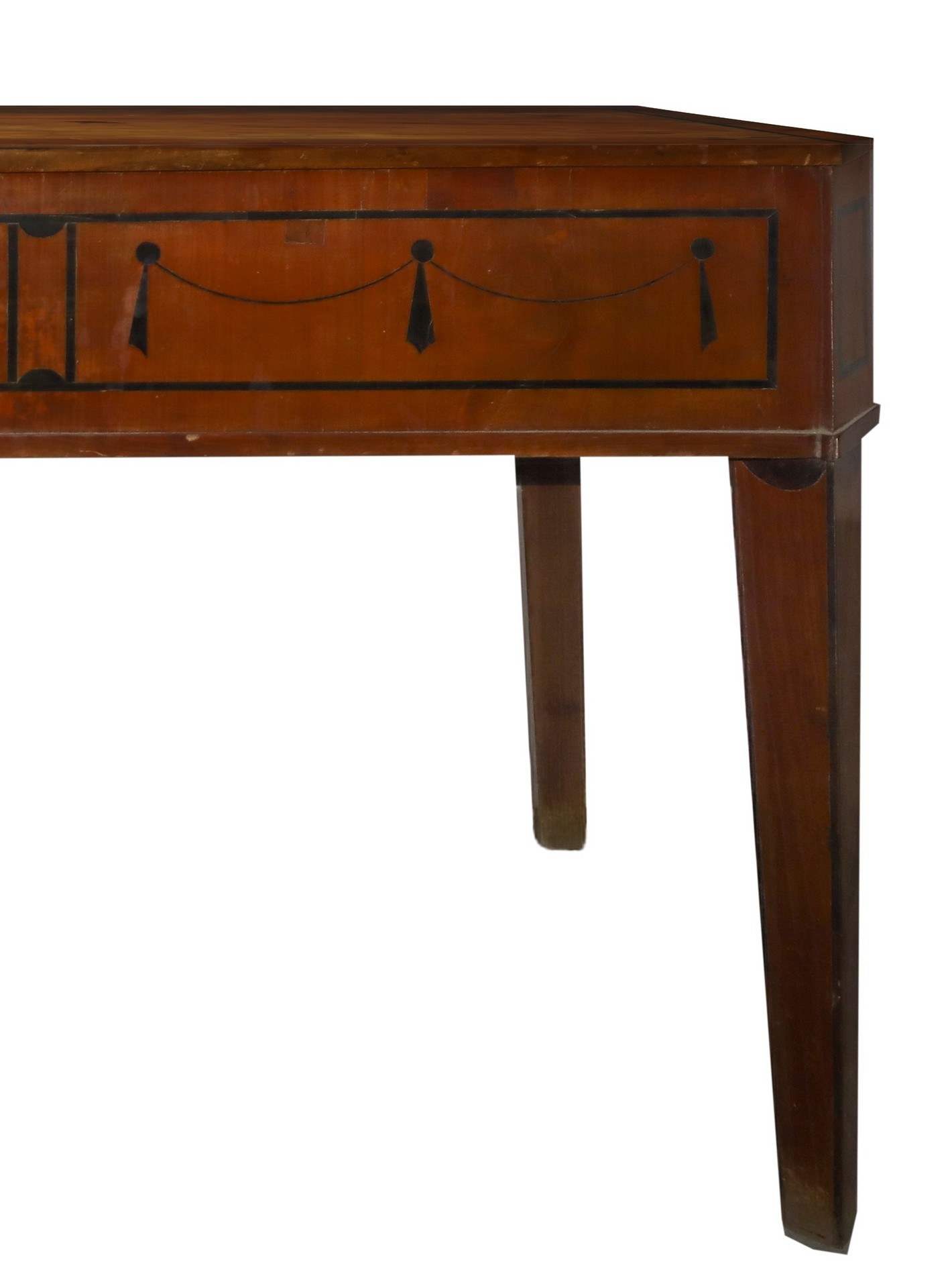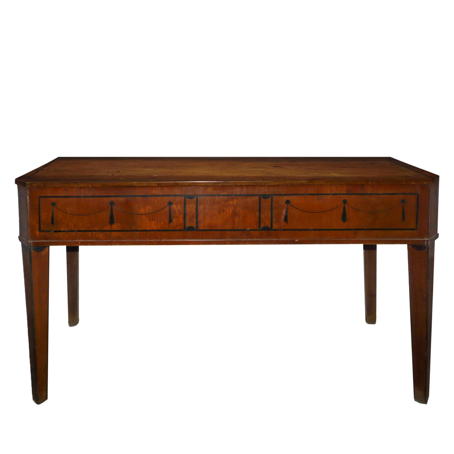 Console Luigi XVI, in legno di piuma di mogano, 18° secolo H cm 78x130x55Intarsi sul fronte in legno nero ebanizzato con ghirlande, piedi tronco piramidali. Maestranze artigiani sicilianeIntarsi sul fronte in legno nero ebanizzato con ghirlande, piedi tronco piramidali. Maestranze artigiani siciliane