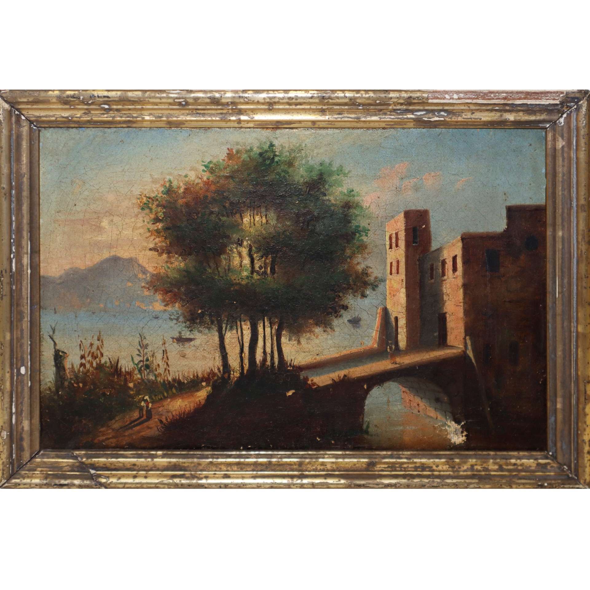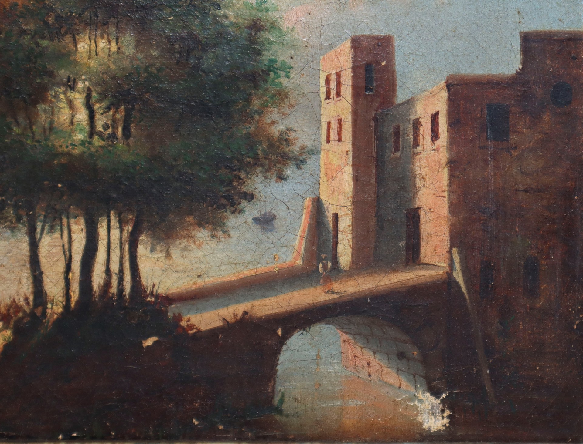 Paesaggio con ponte e alberi, 19° secolo painterCm 18 x 27Olio su tela