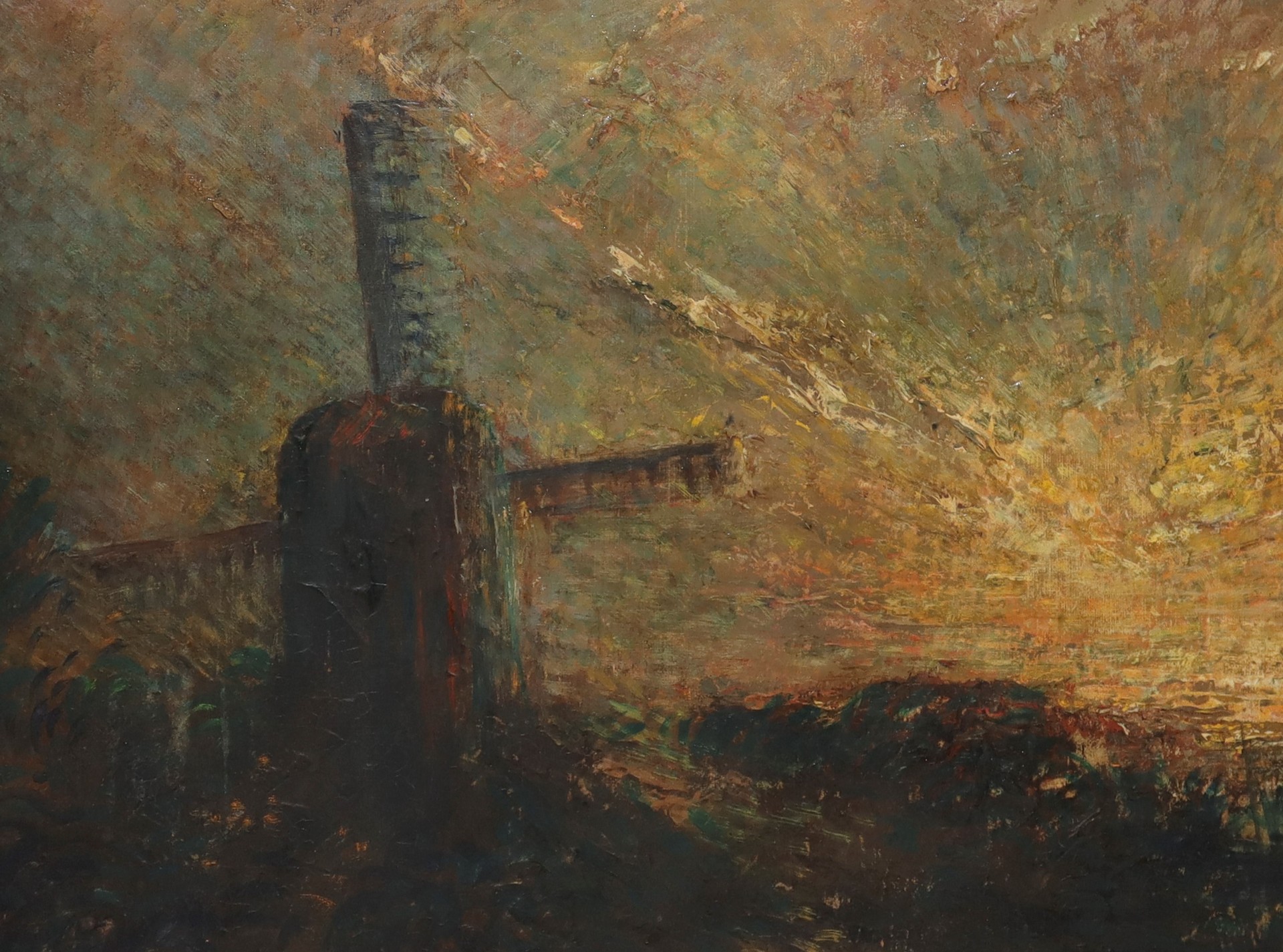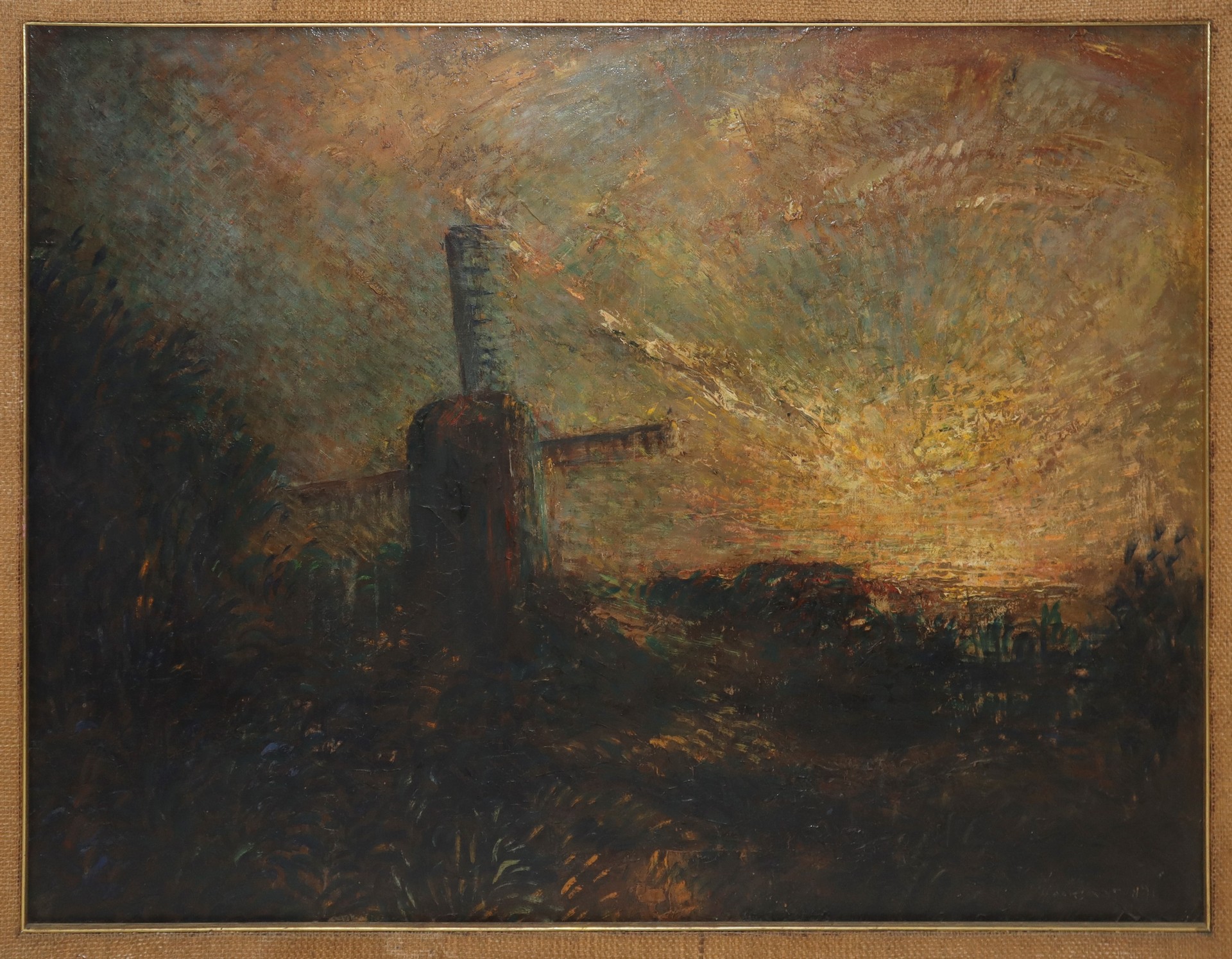 Mulino, 1891H cm 72 x L cm 92, in cornice H cm 86 x L cm 107Dipinto ad olio su telaFirmato in basso a destra e datato 1891. Sul retro etichetta "Raccolta Privata Principe Ottavio D'Aragona". Piccolo restauro sul retro
