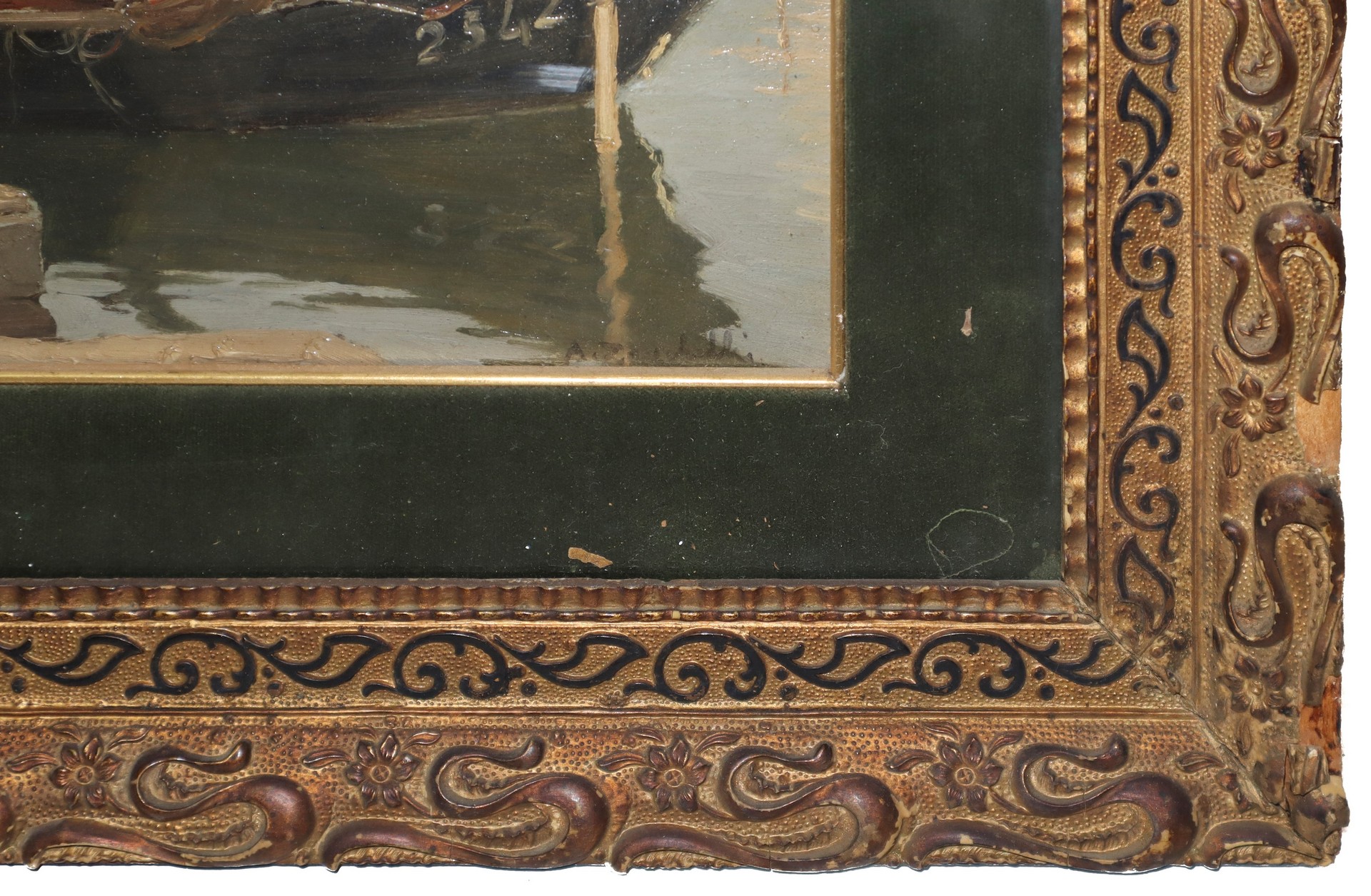 Barche a vela in porticciolocm 28x33,5, in cornice cm 44 x51Olio su cartoncinoFirmato in basso a destra.