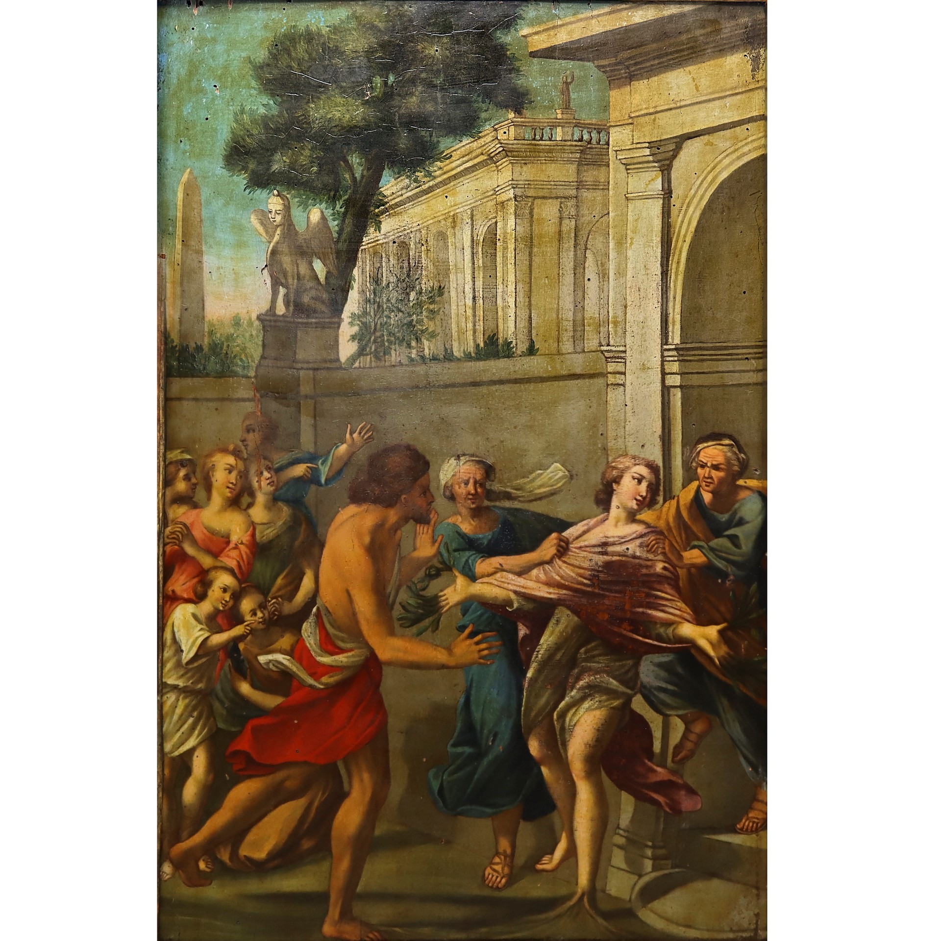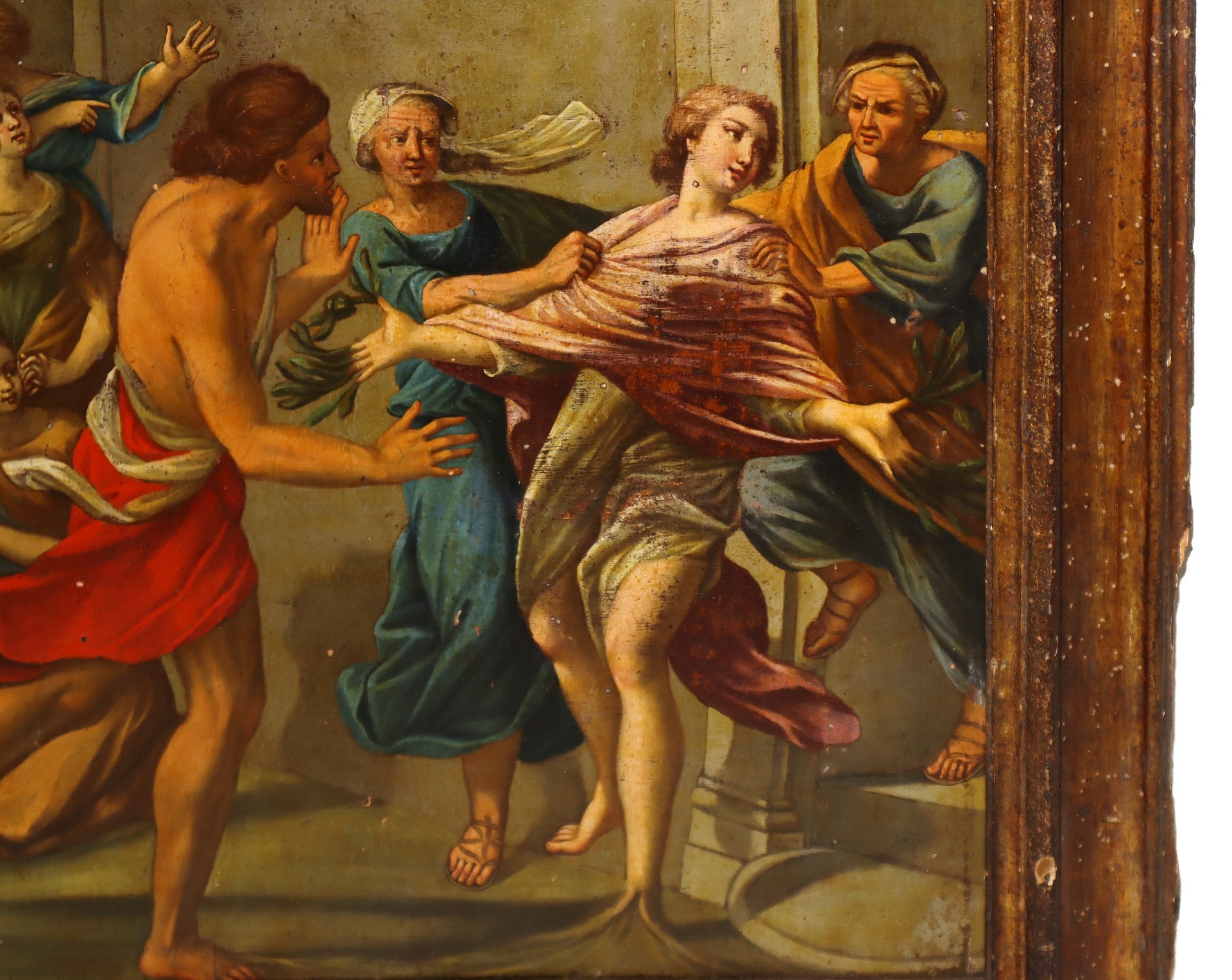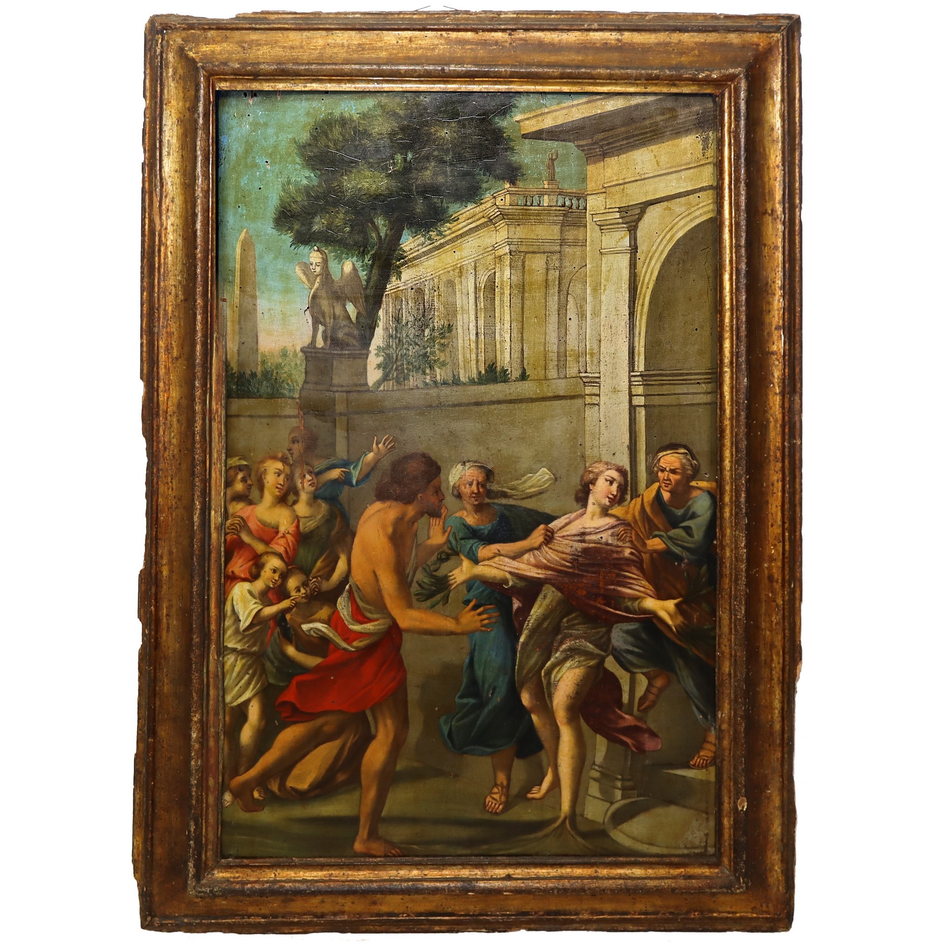 Apollo e Dafne tramutata in pianta di alloro, scena mitologica , 17° secolo cm 76x49, in cornice cm 91x66olio su tavola