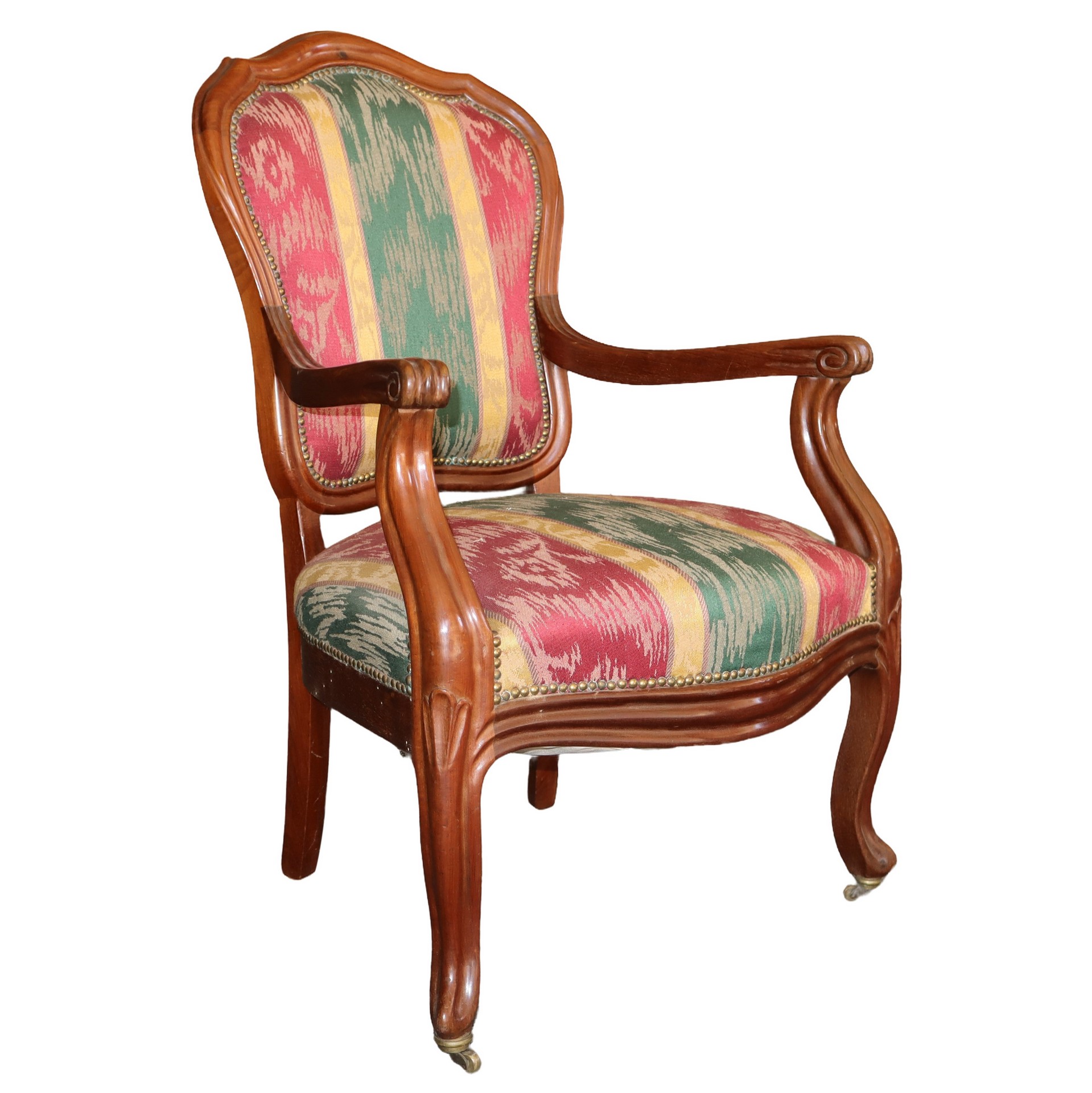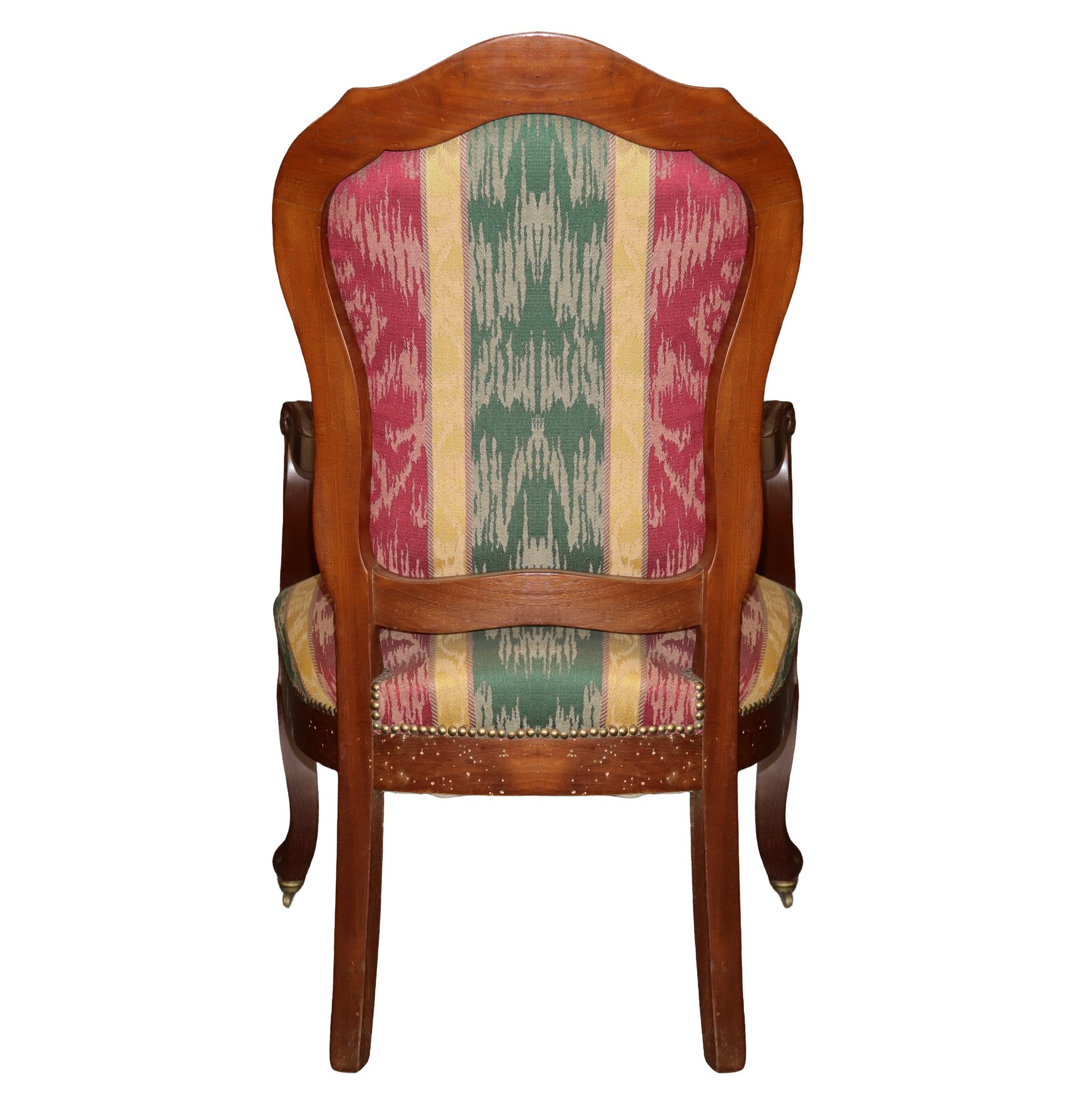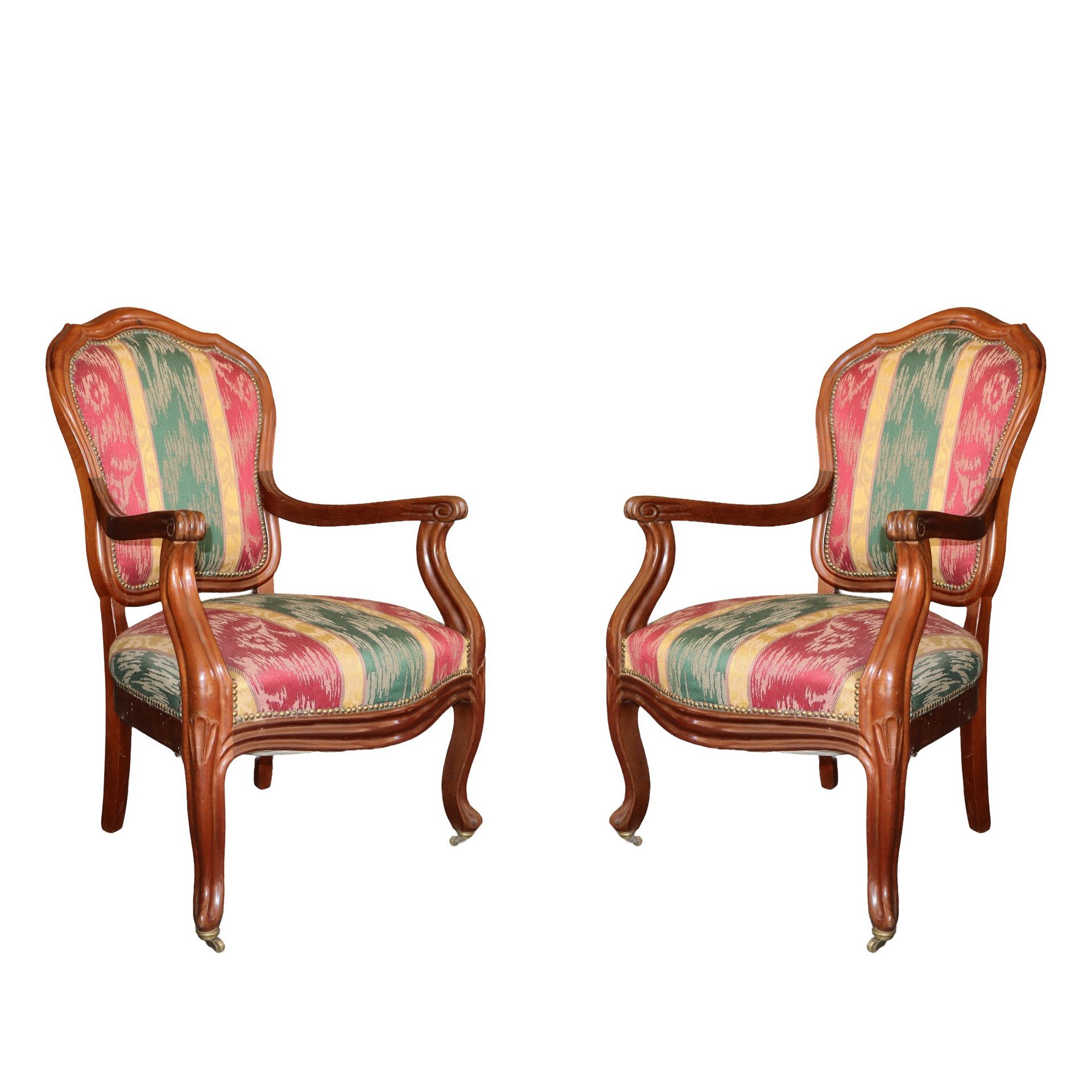 Coppia poltrone Luigi Filippo in legno di moganoH cm 102x60x48, piccolaH cm 96x60x52Presente tarlo vecchio trattato. Con ruote.Presente tarlo vecchio trattato. Con ruote.