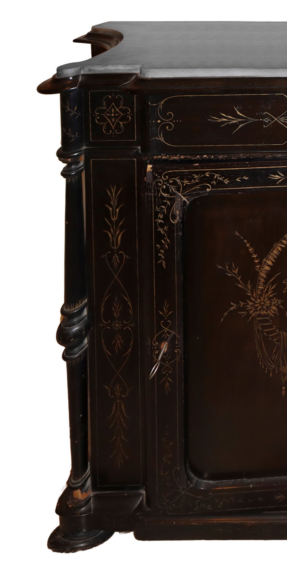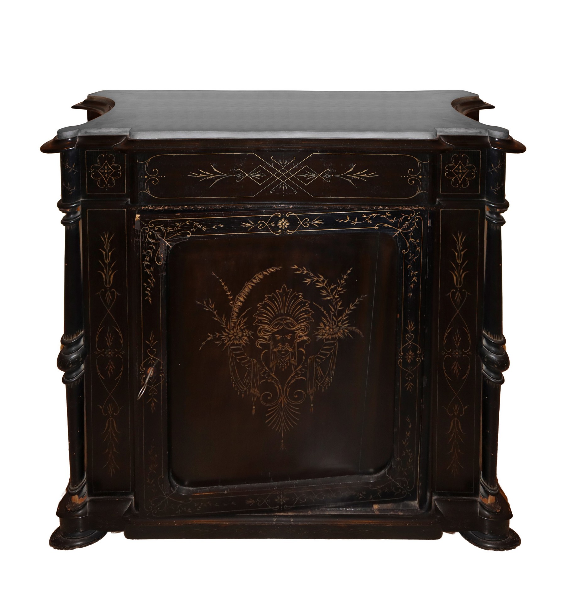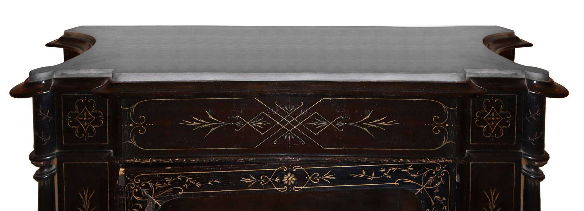 Cassettone ebanizzato nero e bulinato, Sicilia, 19° secolo H cm 110 x L cm 135 x P cm 42Marmo al piano