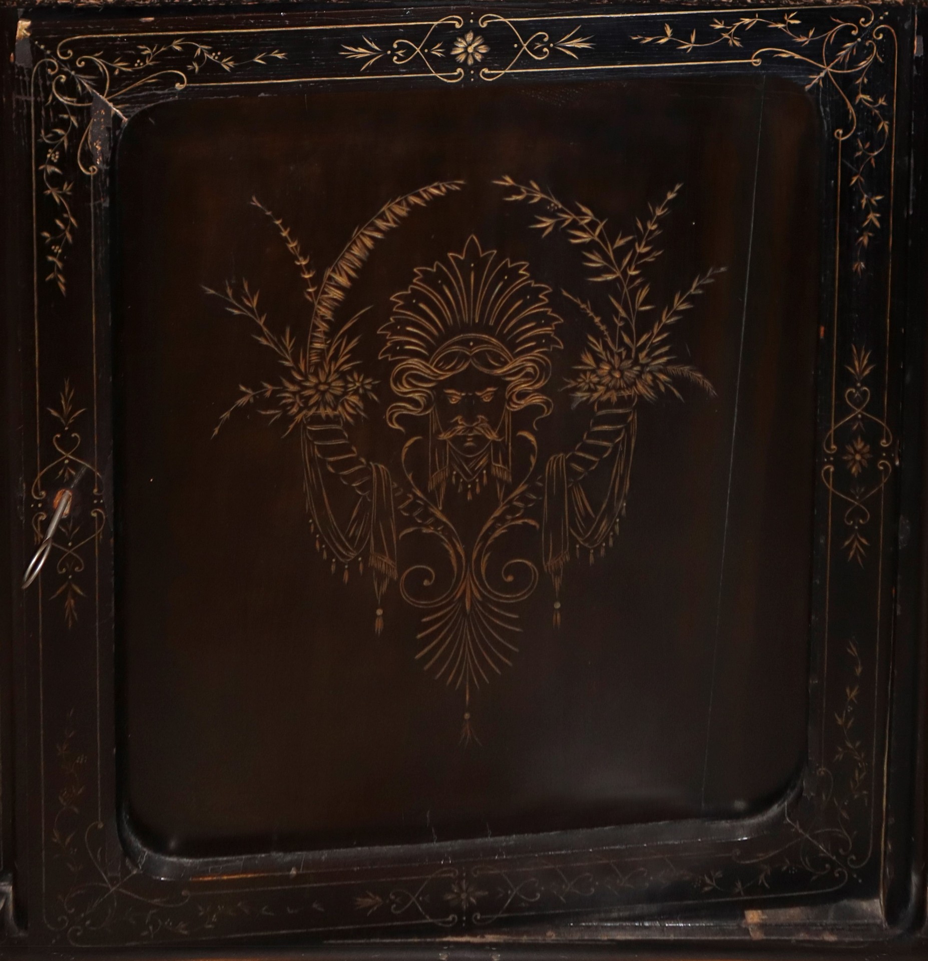 Cassettone ebanizzato nero e bulinato, Sicilia, 19° secolo