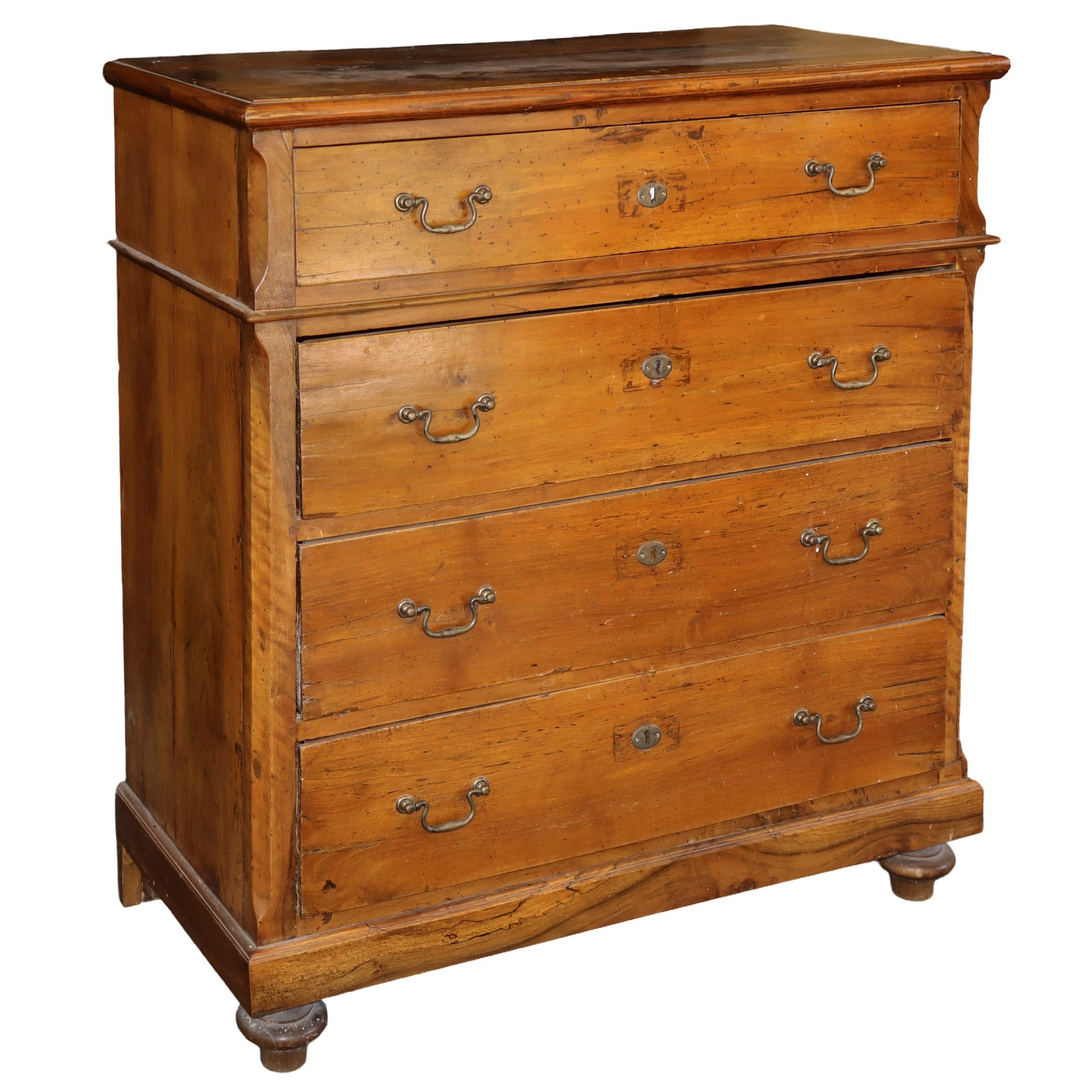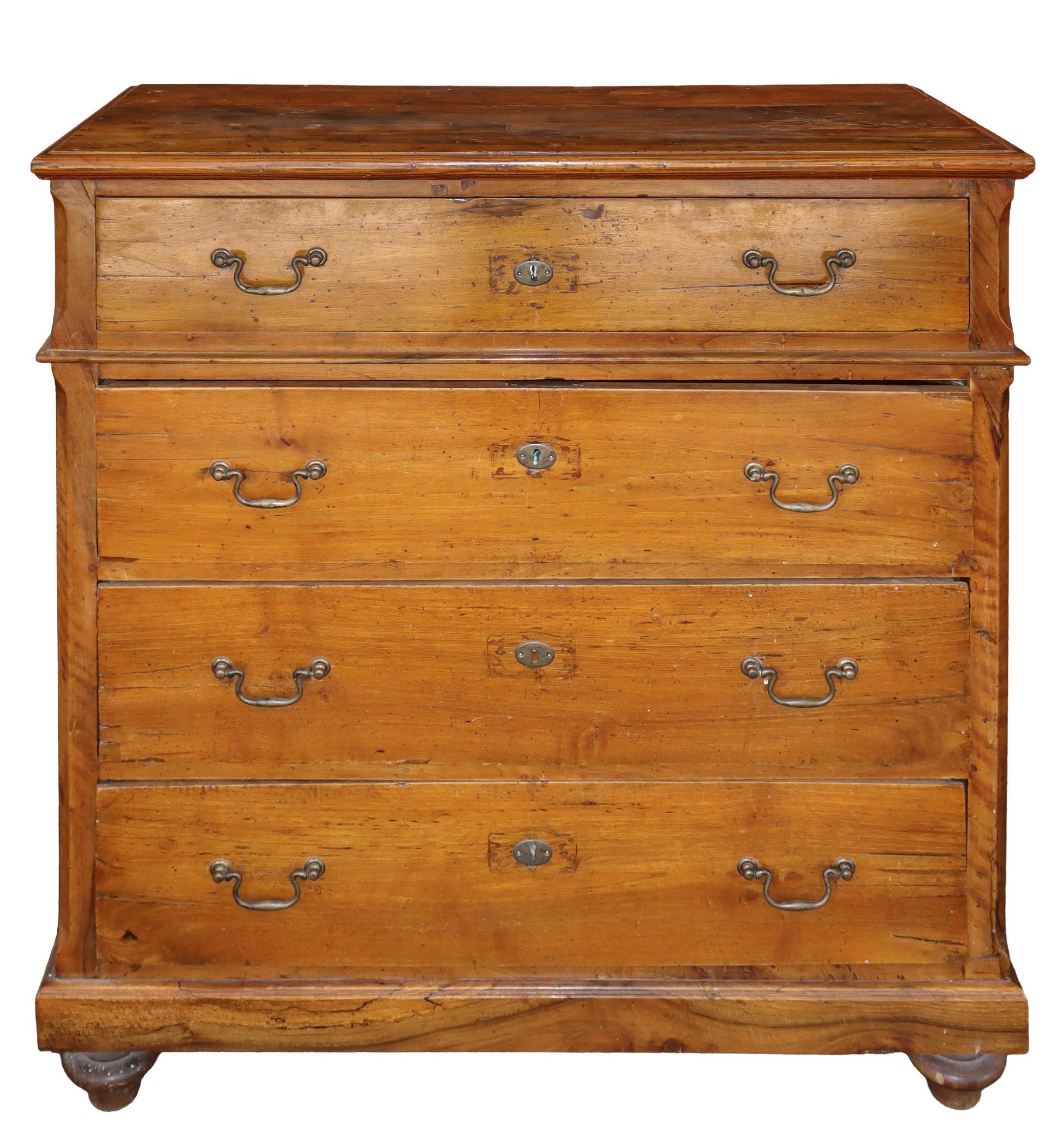 Cassettone in legno di noce massello, nineteen° secolo H cm 111,5 x 102 x 47Piedi a cipolla, quattro cassettiPiedi a cipolla, quattro cassetti