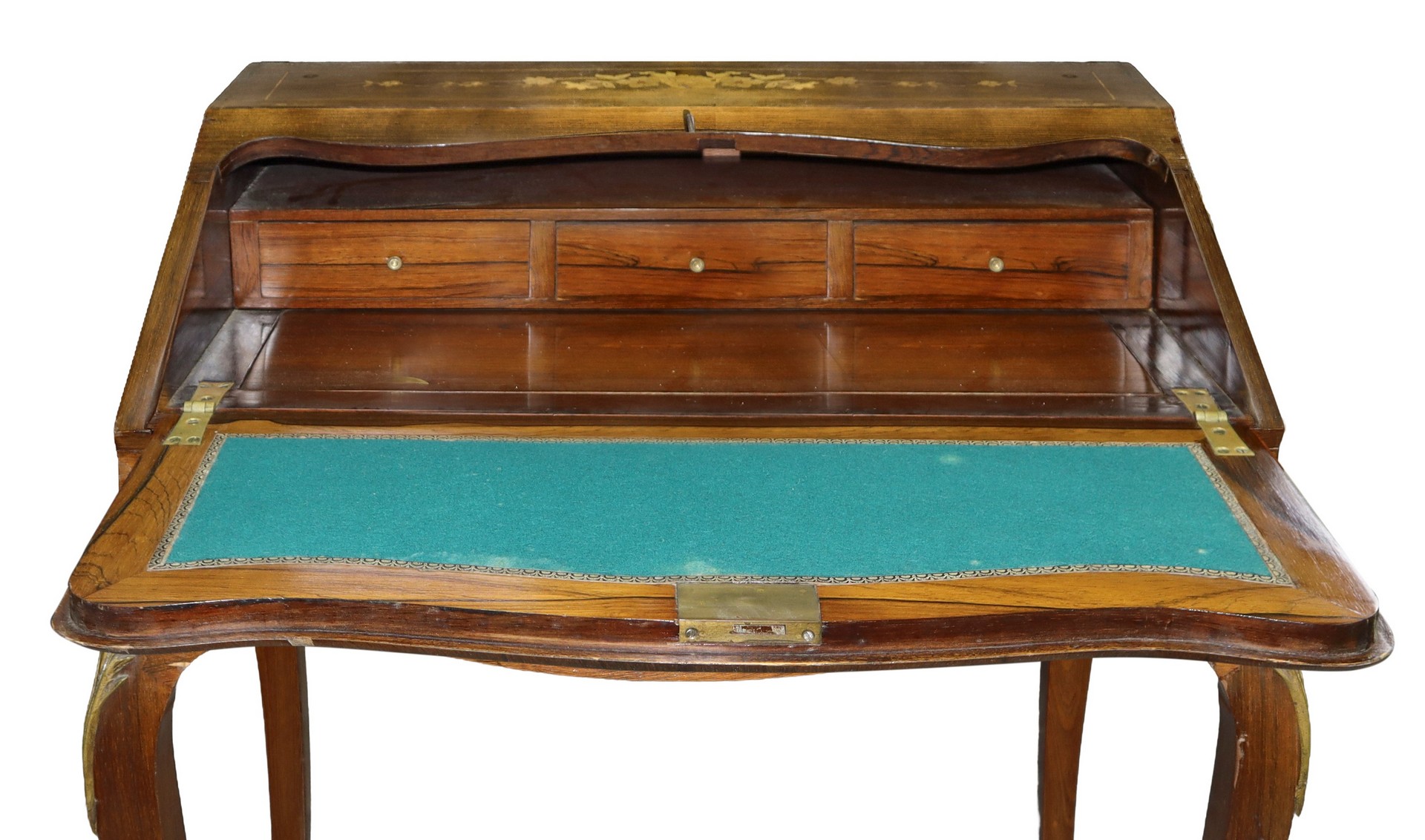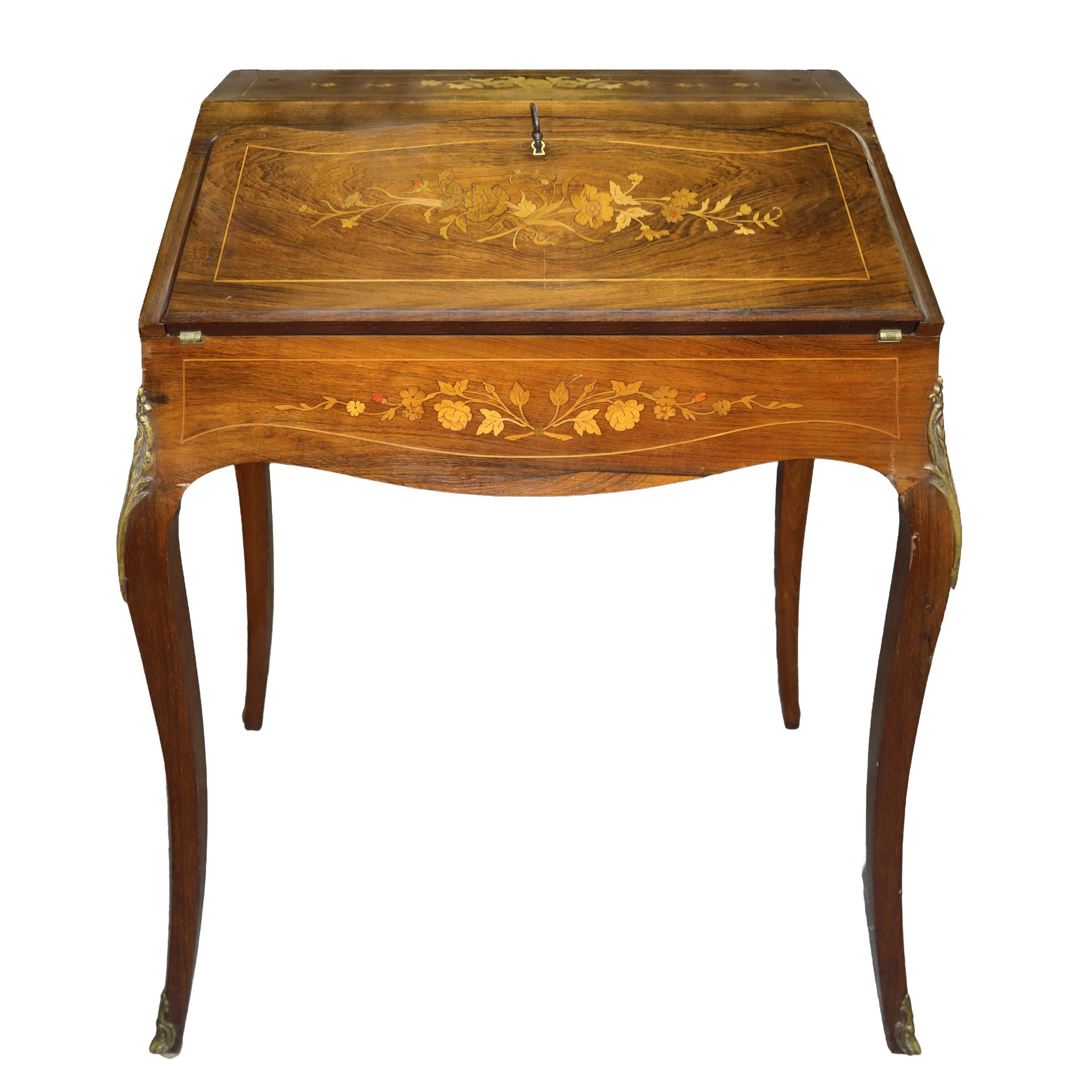 Ribaltina intarsiata a motivi floreali, nineteen° secolo H cm 89x71x44Con calatoia e interno con piccoli cassettiCon calatoia e interno con piccoli cassetti